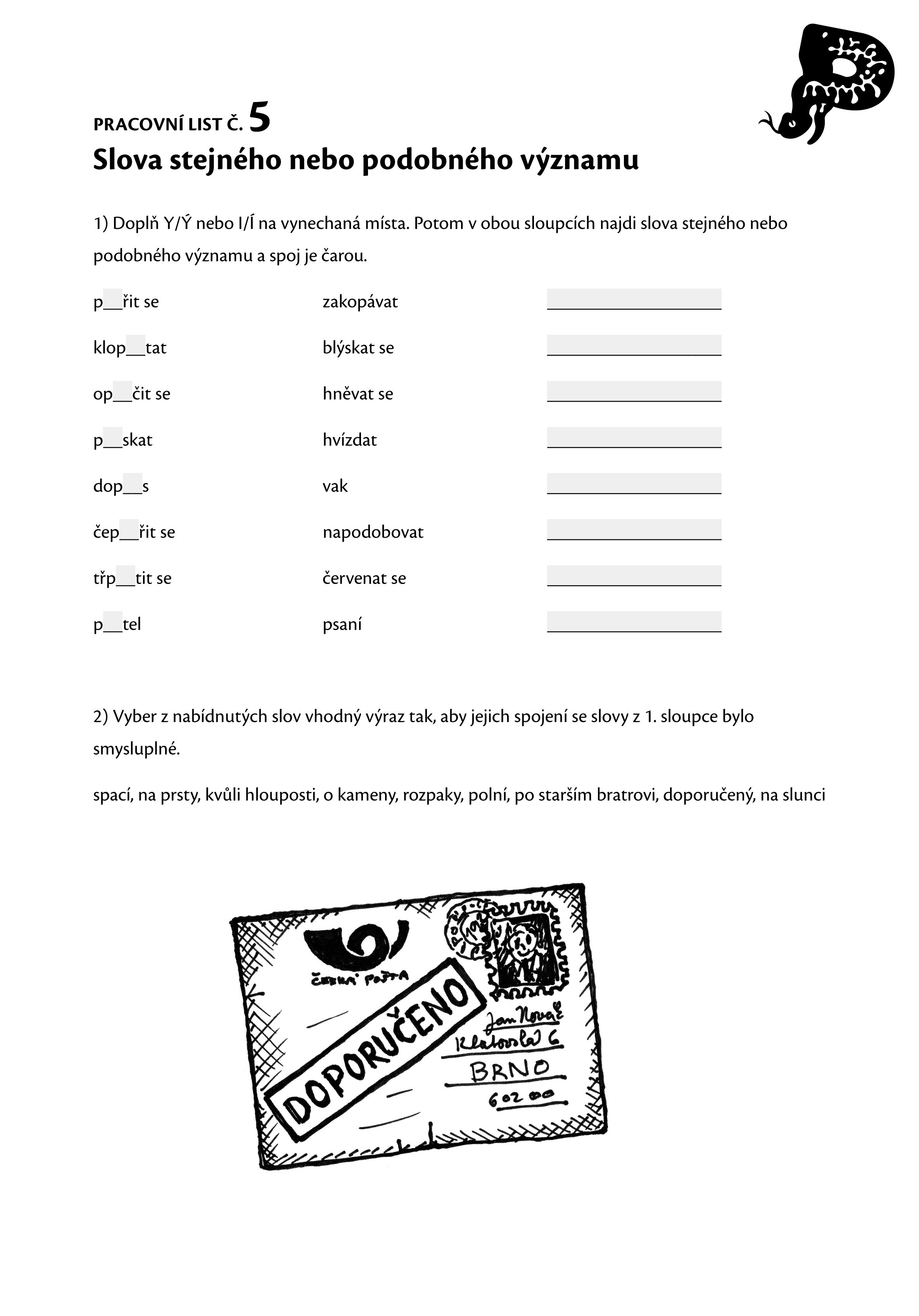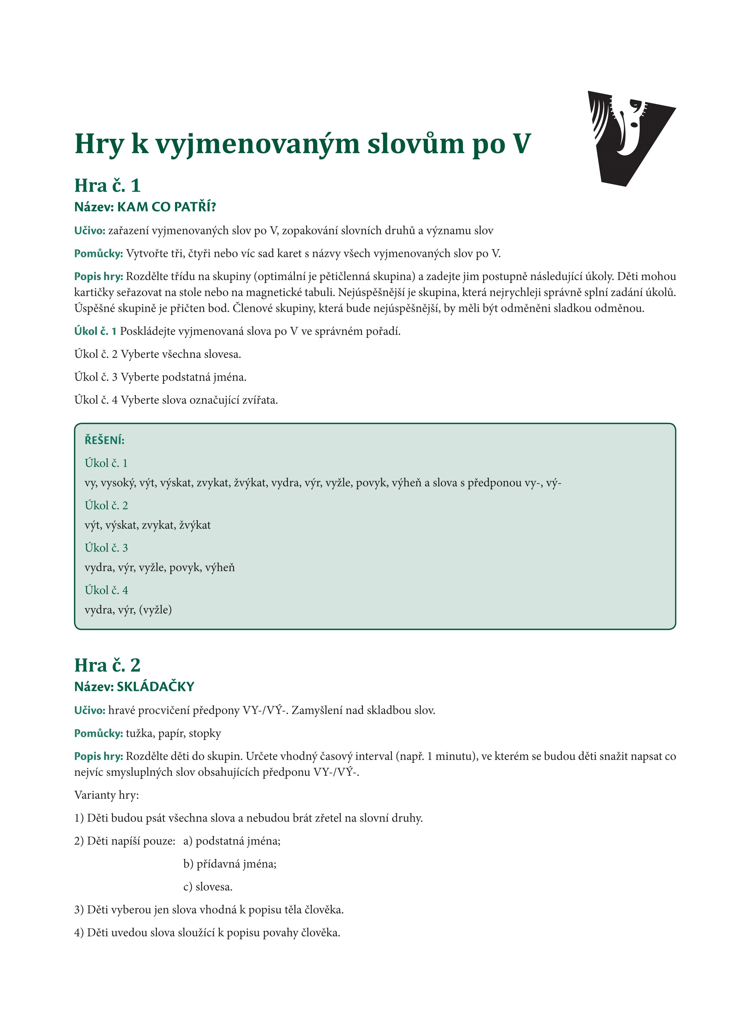Pracovní listy a jazykové hry ve výuce češtiny jsou vhodnou pomůckou pro procvičení a upevnění znalosti vyjmenovaných slov. Publikace je primárně určena pro použití při výuce ve třídě, avšak všechny pracovní listy a většinu her rovněž uplatníte při domácí přípravě.
