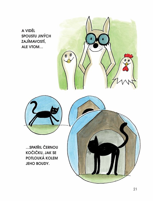 Spousta zábavy se třemi přáteli – pejskem, husou a slepicí. Vykutálené obrázkové seriály.