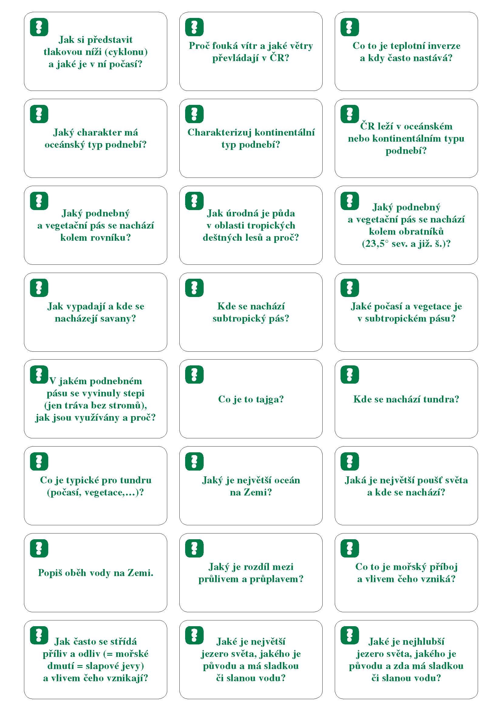 Strč školu do kapsy! 192 kartiček se základním učivem ze zeměpisu můžeš mít stále u sebe. Na jedné straně kartičky je otázka, na druhé správná odpověď. Sestav si vlastní sadu a procvičuj témata, která právě probíráte ve škole. Kartičky díky perforaci snadno oddělíš. Součástí kompletu je praktická krabička.