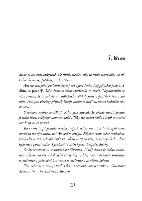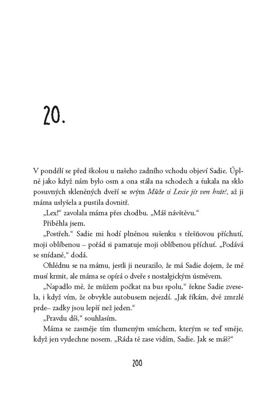 Lex byla šťastná. Měla kompletní rodinu. Kluka, co milovala. Kamarády, kteří se na ni nedívali, jako by se měla každou chvíli zhroutit.