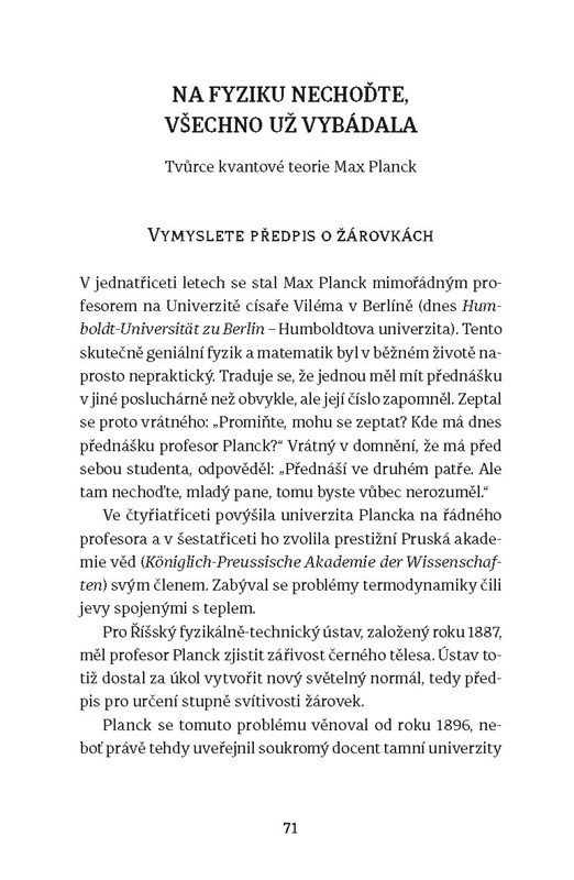 Karel Čapek nechal ve svém slavném dramatu R.U.R. dokončeném v roce 1920 chodit roboty do školy, v níž se učili nazpaměť logaritmické tabulky, počítače či jen obyčejné kapesní kalkulačky byly tehdy ještě mimo běžnou představu o dostupné technice na konci 20. století. Je patrné, že tempo technického pokroku nabralo během minulého století nečekané obrátky. A kdo byli ti, jejichž technické vynálezy a vědecké objevy jako byla letadla, radiotelegrafie, penicilin, EKG, inzulin či teorie relativity, měnily svět a vnímaní světa? Ti to dobyvatelé moderní doby sami možná netušili, jak jejich epochální objevy jednou zasáhnou do každodenního života společnosti