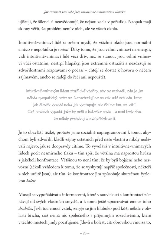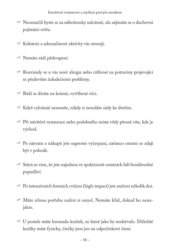 Díky této knize pochopíte, jak funguje vaše intuice, a zjistíte, jak plně využít její potenciál. Zároveň přijdete na to, jak se vypořádat s nepříjemnými situacemi, do kterých se díky své intuitivní povaze můžete dostat.