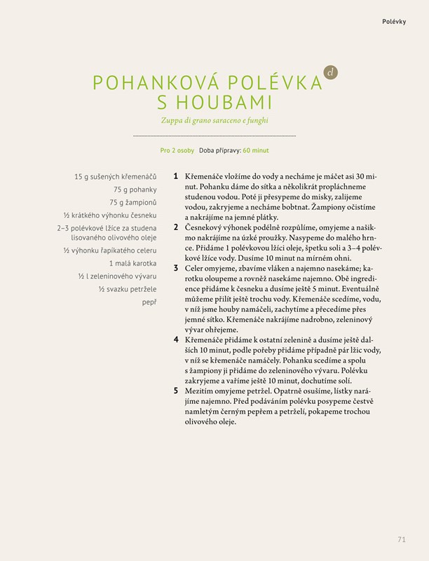 Další kniha z pera tohoto neúnavného autora, která navazuje na své předchůdkyně Strava pro klid v duši a Strava pro klid v duši - recepty veganské kuchyně, tentokrát v italském duchu. Naleznete zde 90 receptů na typickou italskou stravu, aniž by jednotlivé pokrmy obsahovaly cokoli živočišného původu. Lákavé fotografie dokládají, že veganská strava opravdu není nudná.