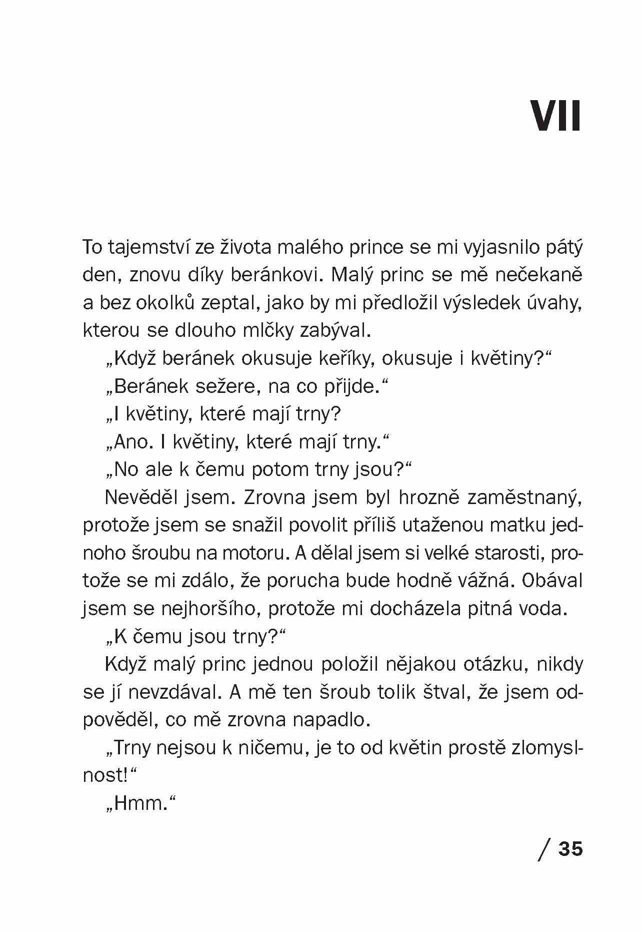 Oblíbený příběh Malého prince vychází v obnoveném vydání s ilustracemi Vladimíra Fuky, jednoho z největších českých ilustrátorů. Představte si, že se ocitnete sami uprostřed pouště, kde široko daleko není živé duše, když vtom se před vámi zjeví blonďatý chlapec. A jako by to nestačilo, nedá jinak, než abyste mu nakreslili beránka. To jednoho překvapí! Od toho okamžiku už netoužíte po ničem jiném než zjistit, kde se ten zvláštní kluk vzal a co prožil. A než se nadějete, procestujete s ním planety podnikatelů, pijáků, náfuků nebo lampářů.