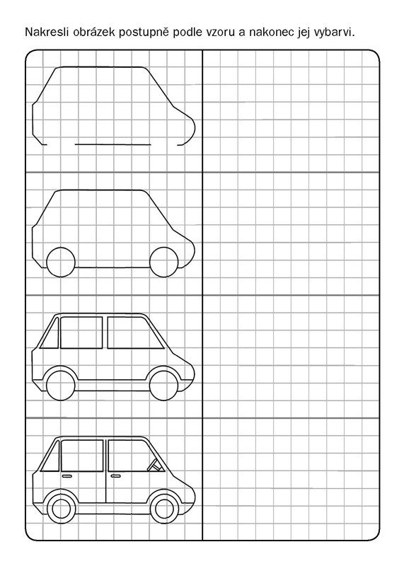 * nauč se kreslit zvířátka nebo dopravní prostředky