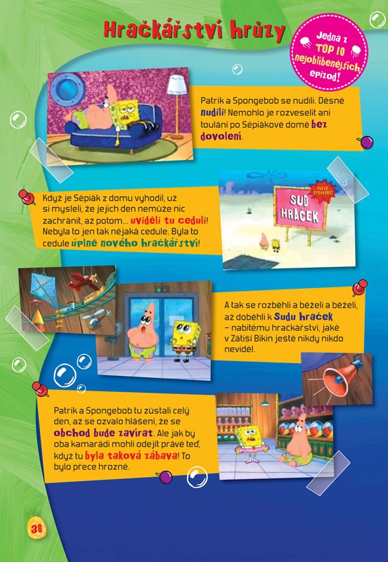 Pojďte se radovat se Spongebobem! Tato kniha poutavých aktivit přináší vtipné profily kamarádů ze Zátiší bikin, komiksové příběhy, zábavné úkoly a hádanky, křížovky, bludiště, omalovánky, vtipy i návody na vytváření. Jednoduše spoustu zábavy pro ukrácení dlouhých chvil nebo přestávek ve škole.