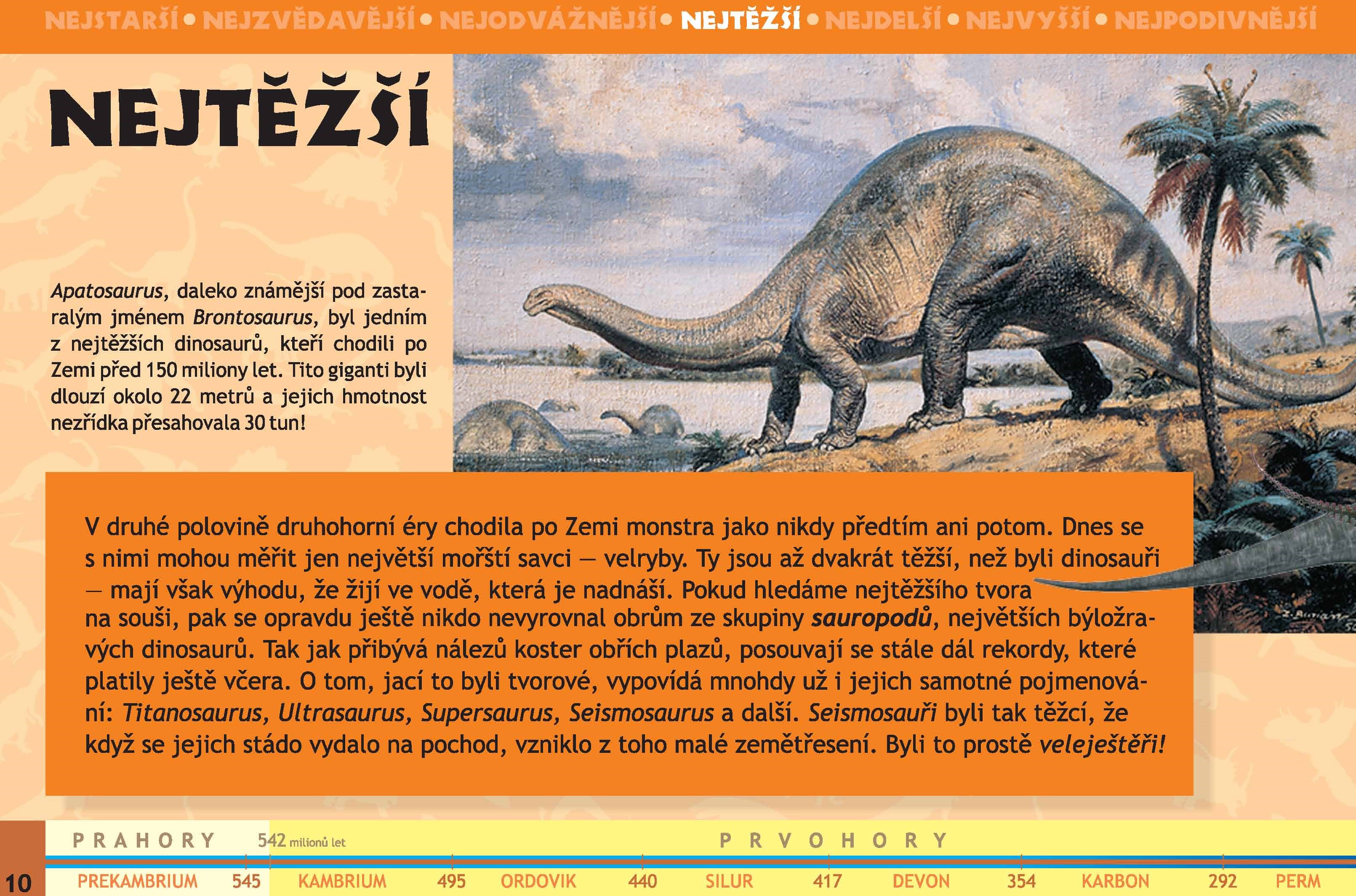 Knížka na základě jedinečných ilustrací Zdeňka Buriana přibližuje dětem i dospělým NEJ – NEJ – NEJ... z pravěku. Odborník na tuto éru a autor více než tuctu populárně-naučných knih pro děti i dospělé Bořivoj Záruba nám představuje Nejodvážnější, Nejznámější, Nejtěžší, Nejnebezpečnější tvory pravěku a připojuje množství zajímavostí z doby, která dodnes nepřestává lidstvo fascinovat. Burianovy ilustrace doplňují fotografie a nákresy, a kniha se tak stává zajímavým a přehledným průvodcem jurským světem i epoch, které s ním sousedily.