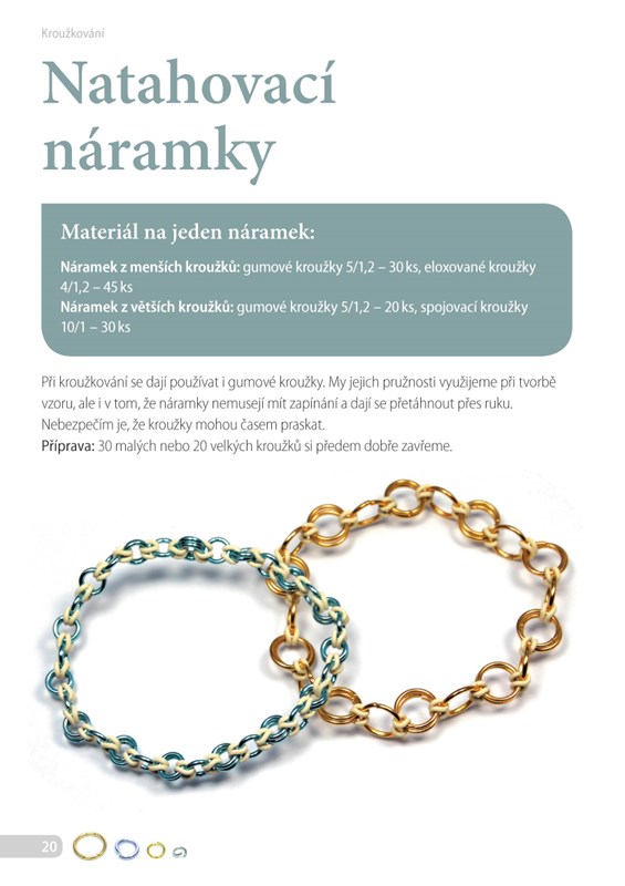 Kroužkování – starobylá technika používaná již před staletími! Spojováním kovových kroužků, korálků, drátků a dalšího zajímavého materiálu vznikají nádherné šperky, jejichž krásu každý ocení. Zapojte svou fantazii a šikovné ruce a zkuste si vytvořit originální šperky s puncem jedinečnosti a vkusu.