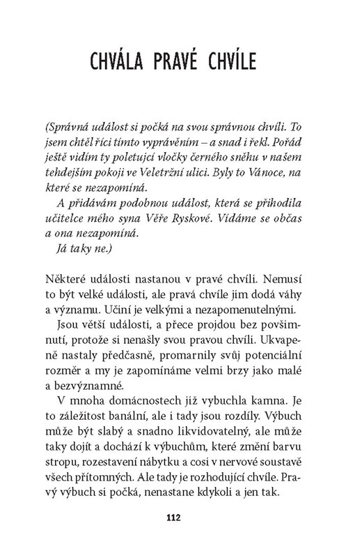 Od prvního vydání této knížky v roce 1967 uplynulo sedmnáct let, a někteří, o nichž tu vypravuji, již nežijí. Moje plzeňské tety, Jiří Šlitr a můj syn. Přál bych si, aby tato knížka byla jedním z míst, kde živi zůstávají.