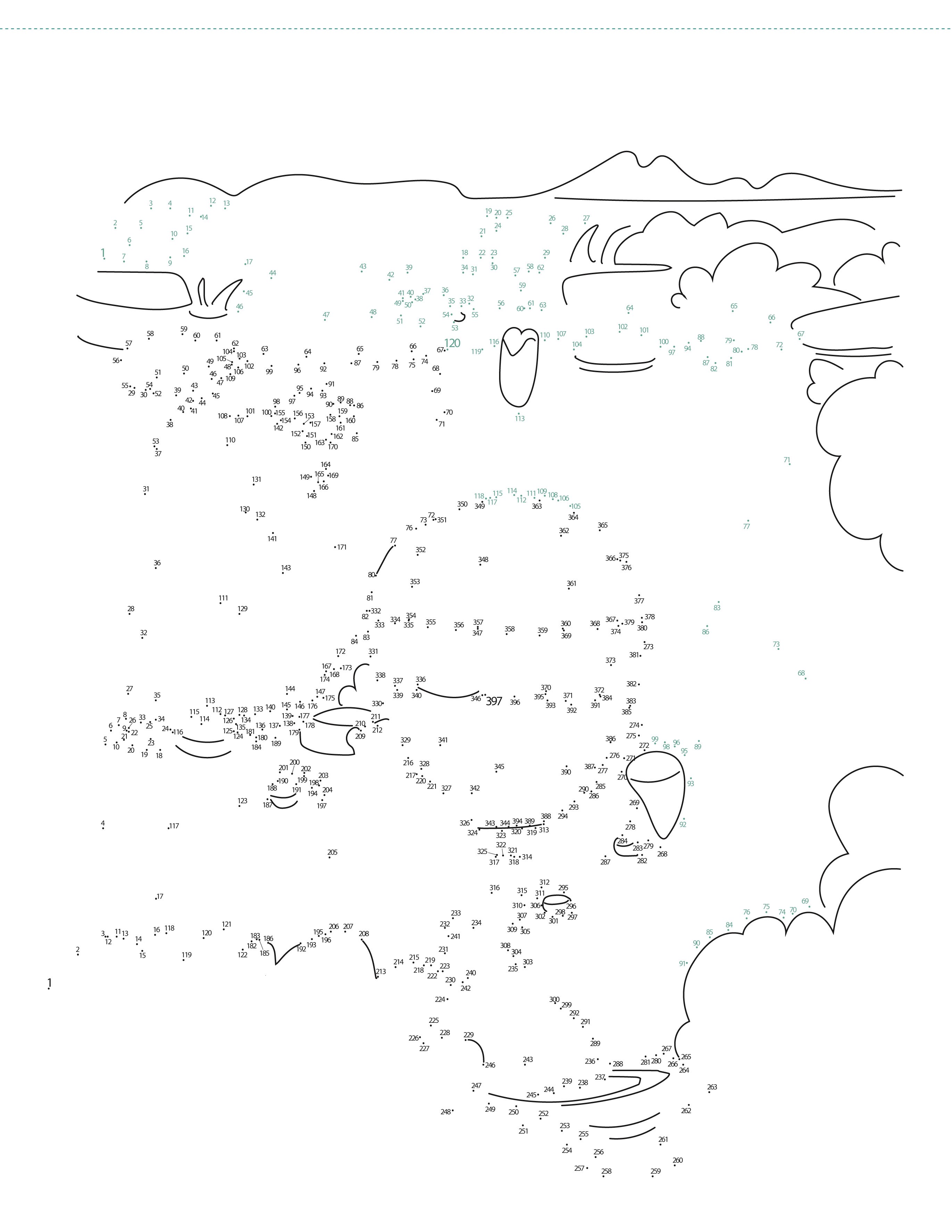 Vyhledejte číslo 1 na stránce (je označeno tučně) a pak postupně spojujte po sobě jdoucí čísla tužkou. Dávejte pozor i na barvu čísel. Až budou všechna čísla spojena, objeví se před vámi krajiny exotické Indie, dalekého Peru, nezapomenutelné Benátky a mnoho dalších míst.