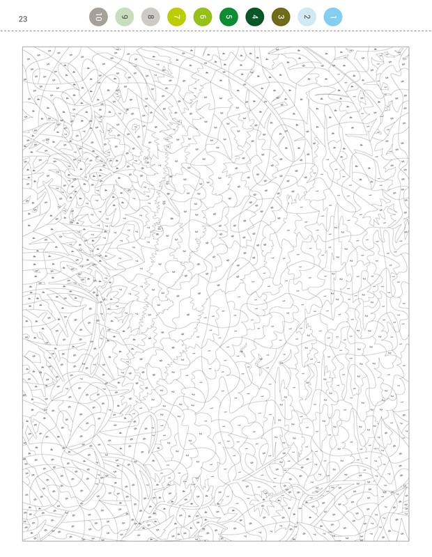 V této knize se skrývá přes 30 překrásných scenérií ze všech koutů naší planety. Abyste je spatřili, stačí vzít do rukou různobarevné pastelky či fixy a řídit se instrukcemi. Každý obrázek je rozdělen do několika políček s označeným číslem. Číslo označuje barvu, kterou má být políčko zakresleno. Seznam barev je vždy uveden v horní části stránky.
