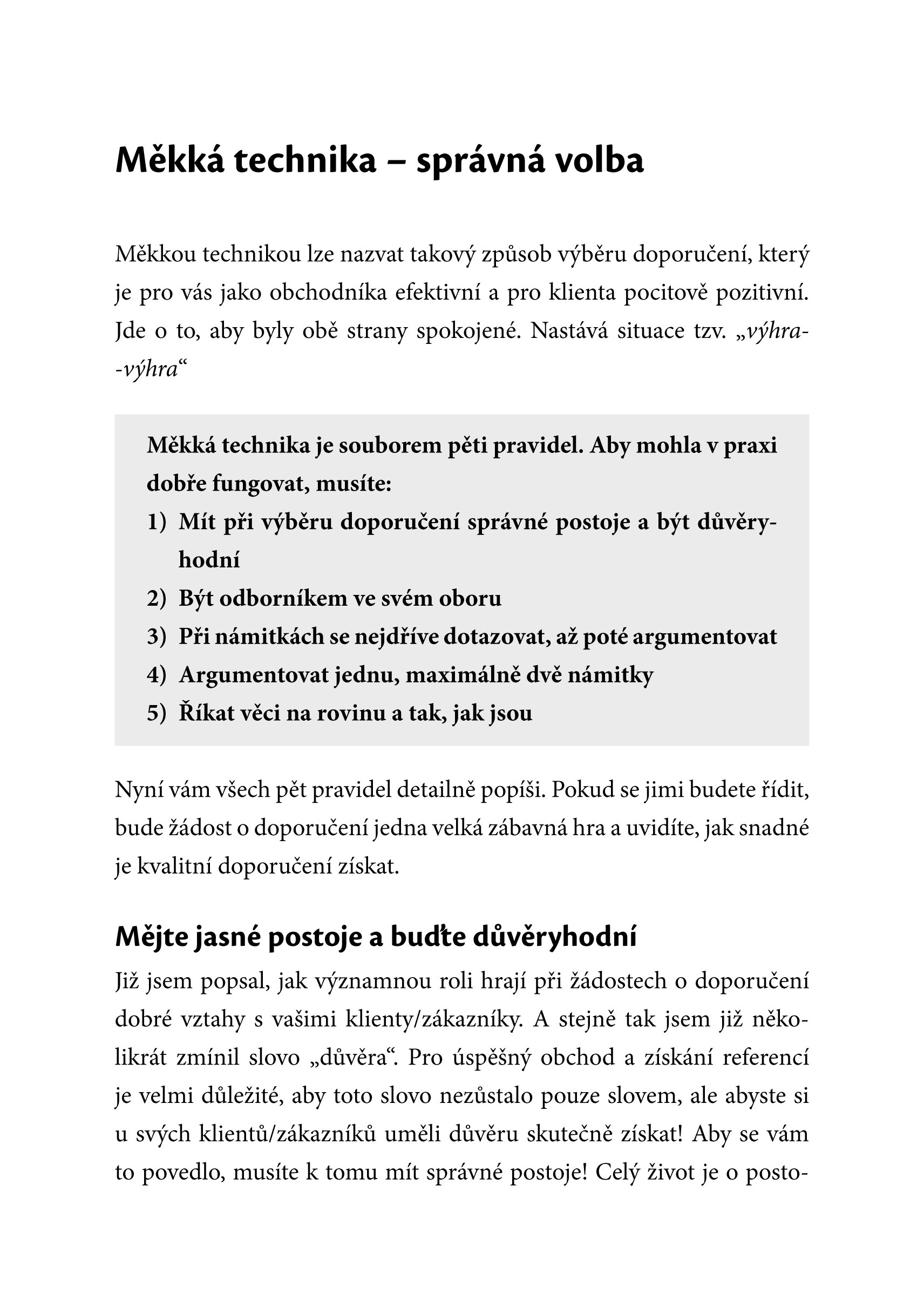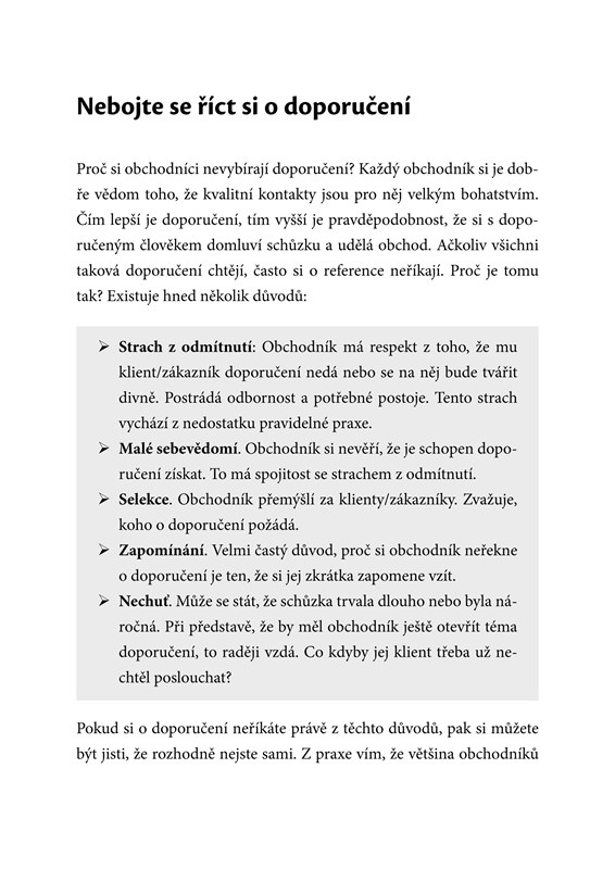 Tato kniha je pro všechny, kterým skutečně záleží na dlouhodobém přísunu klientů/zákazníků – ať už jste finančním poradcem, realitním makléřem, prodejcem kosmetiky, telefonních tarifů, domácích spotřebičů, výživovým poradcem, účetním, architektem, grafikem,webdesignerem, fotografem, psychologem, svatebním koordinátorem nebo jakýmkoliv jiným obchodníkem či řemeslníkem.