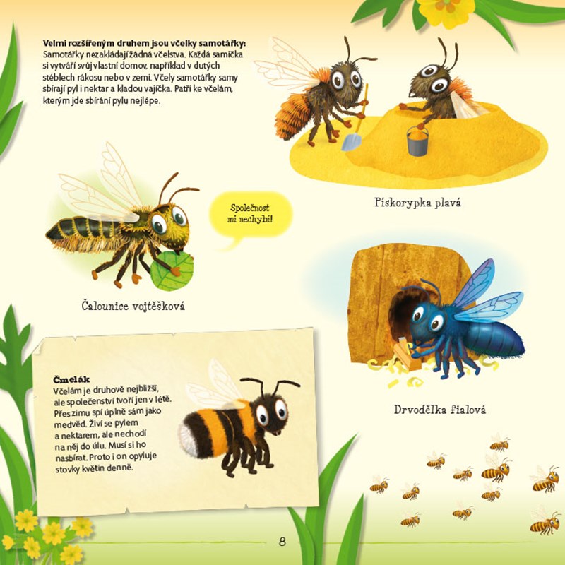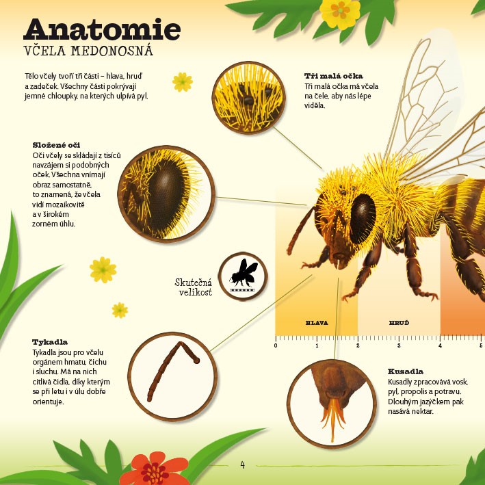 Sledovali jste někdy včely na louce nebo poblíž včelího úlu a ptali jste se sami sebe, kdo jim velí? Včelí královna, nebo někdo jiný? A co všechno musejí včely udělat, než vyrobí med? Podobné otázky napadají mnohé z nás, ale ne každý měl tu příležitost nahlédnout do včelího úlu. Nyní je to možné. Tato kniha obsahuje Encyklopedii včel a také prostorový model včelího úlu, díky kterému se čtenáři seznámí s každou jeho částí. Zjistí, jak si včely staví plástve, co dělá trubec a včelí dělnice nebo jaká je role včelí matky. Nahlédněte dovnitř, poodhalte tajemství včel a zjistěte, jak to chodí ve včelím úlu.
