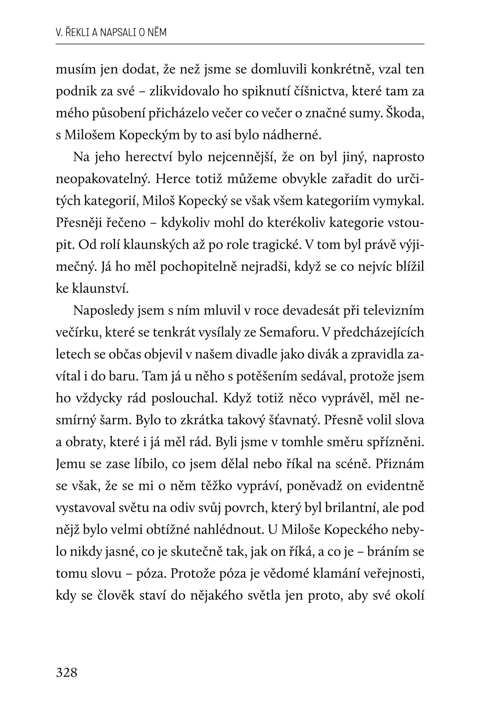 Portrét této legendy českého herectví doplňuje Pavel Kovář s Cyrilem Höschlem a také vzpomínky jeho kolegů a přátel. Kniha tak podává pravdivou a autentickou výpověď o výjimečném člověku a geniálním herci.