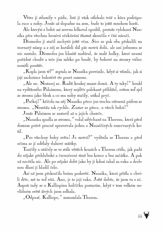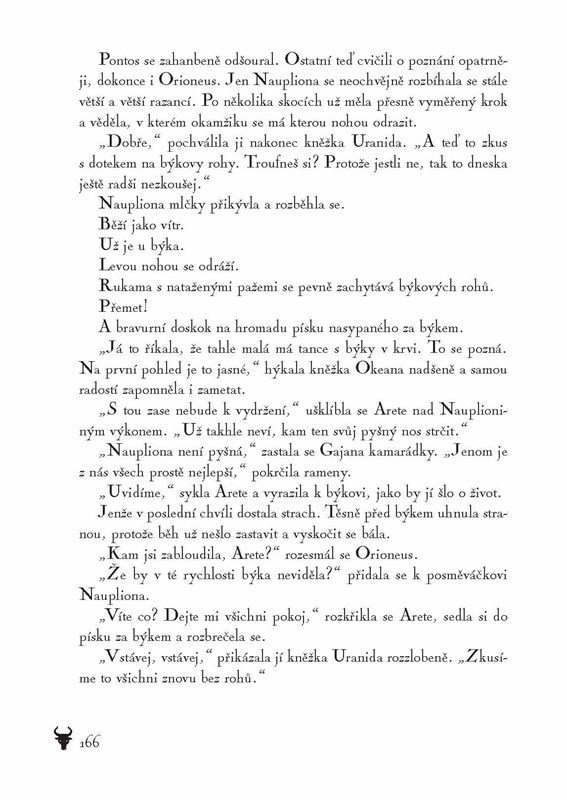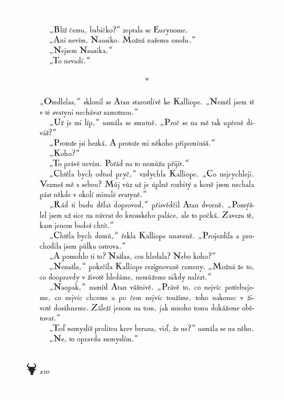 Kalliope se probudila z těžkého snu, který se jí bude zdát ještě mnohokrát. Je sama, manžel Nausikleves odplul hned po svatbě na obchodní lodi do Egypta. Mladá žena dosud neví, že její muž se nikdy nevrátí a že ona čeká dítě. Prohlédne až ve svatyni, kdy jí kněžka prorokuje, že dítě bude zaslíbeno Poseidonovu kultu, kde bude i tančit s býky. Když se Nausika narodí, její matce je teprve šestnáct let, ale je pevně rozhodnutá dceru před věštbou ochránit. A udělá pro to všechno! Kalliopin šťastný život skončil, dobrodružství Nausiky z Knossu začíná. Sudička Klotho však rozpřádá svou božskou nit osudu dál…
