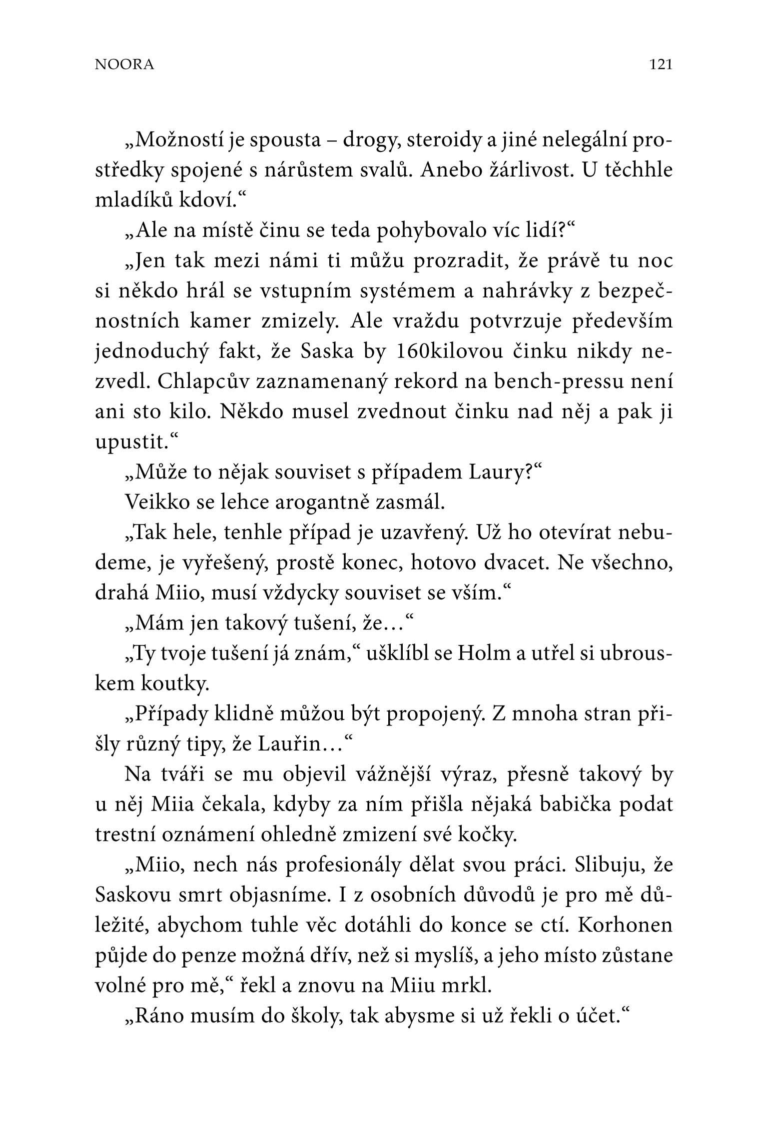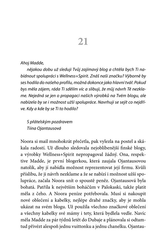 Noora, hlavní hrdinka druhé části trilogie Městečko Palokaski, je zoufale osamělá dívka bez přátel. Když je v blízkosti pláže v Palokaski nalezeno Lauřino mrtvé tělo, její bývalá spolužačka Noora je rozrušená. Bedlivě sleduje vyšetřování Lauřina zmizení a je připravená podniknout téměř cokoli - včetně vytvoření druhé identity -, aby získala jen zlomek pozornosti, která je i po smrti věnována Lauře.