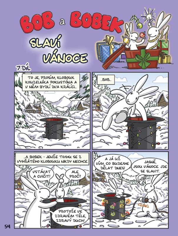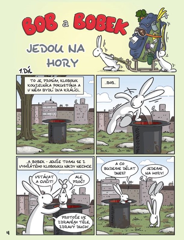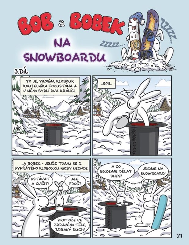 Ahoj, blíží se zima a s ní i zimní radovánky. Je to čas, kdy vyrážíme na hory a těšíme se na zábavu a nová dobrodružství. Lyže, sáňky, snowboard ale hlavně báječné koulovačky. V naší nové knize najdete sedm zbrusu nových barevných komiksových příběhu a spoustu zábavných rébusů a doplňovaček. Váš Bob a Bobek – králici z klobouku.