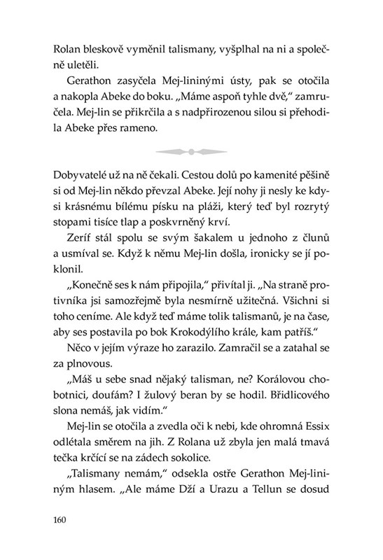 Ostrovní země vypadá jako ráj na zemi. Přestože je zalitá sluncem, další cesta se zdá být zahalená stíny. Při pátrání po talismanech, které nesmějí padnout do rukou nepřátel, už Conor, Abeke, Mej-lin a Rolan procestovali celý svět. Na každé výpravě je však jejich pronásledovatelé dostihli, jako by věděli, kde je najít. Nyní se přátelé dozvídají proč.