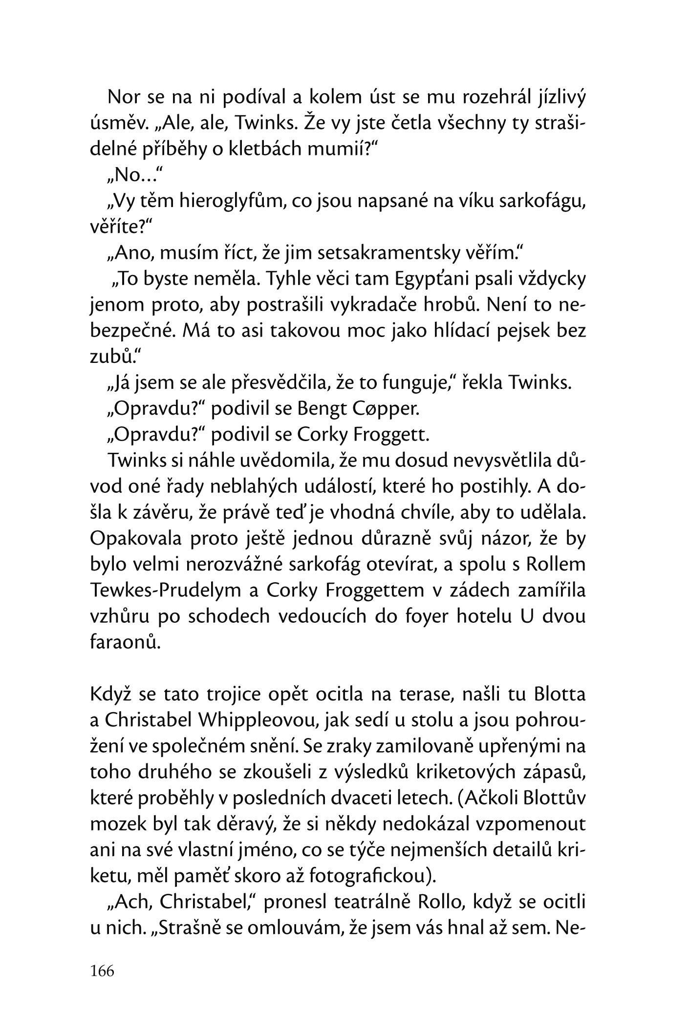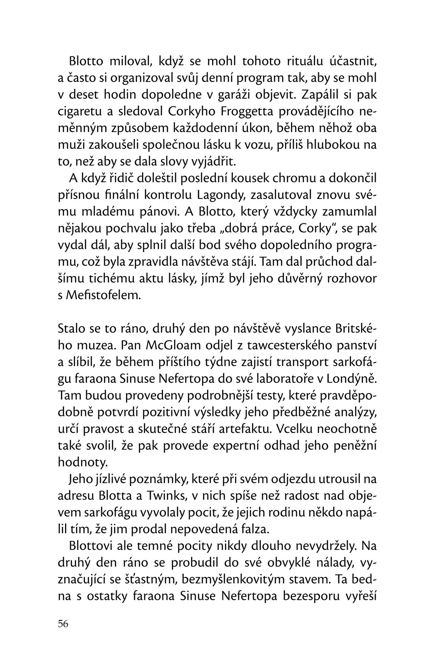 Blotto a Twinks jsou v rámci inventury pověřeni průzkumem. Kromě většího množství bezcenných krámů je nalezeno též několik staroegyptských artefaktů, které ze svých cest přivezl desátý vévoda, Rupert Egyptolog, včetně tajemného sarkofágu zdobeného hieroglyfy. Právě v okamžiku, kdy Twinks překládá hieroglyfy varující před znesvěcením sarkofágu, nadzdvihne řidič Corky Froggett víko a od té chvíle ho pronásleduje jeden podivný incident za druhým. Nad tawcesterským hradem visí kletba faraona Sinuse Nefertopa a pouze Twinks a její geniální mozek ji může zlomit.