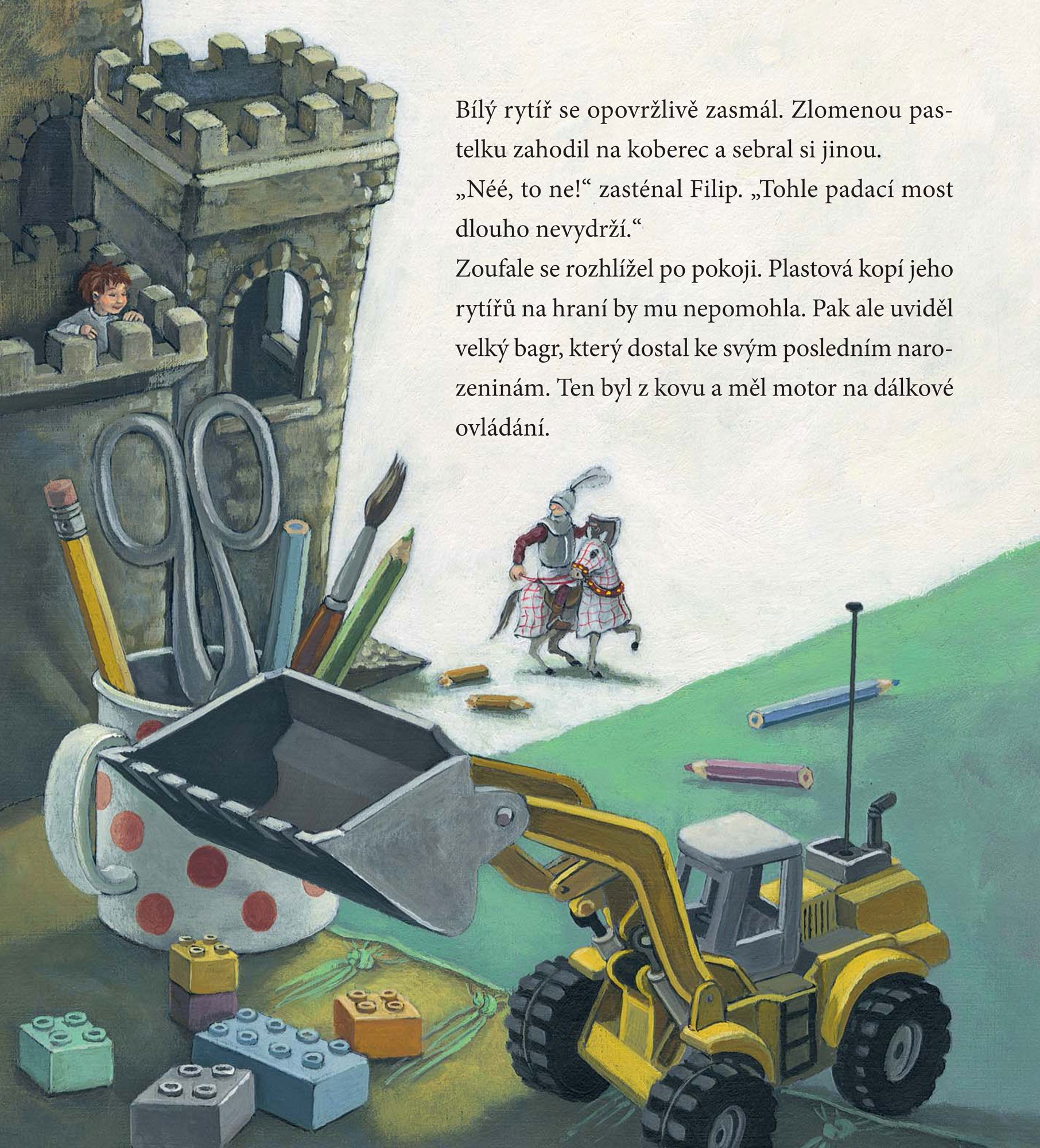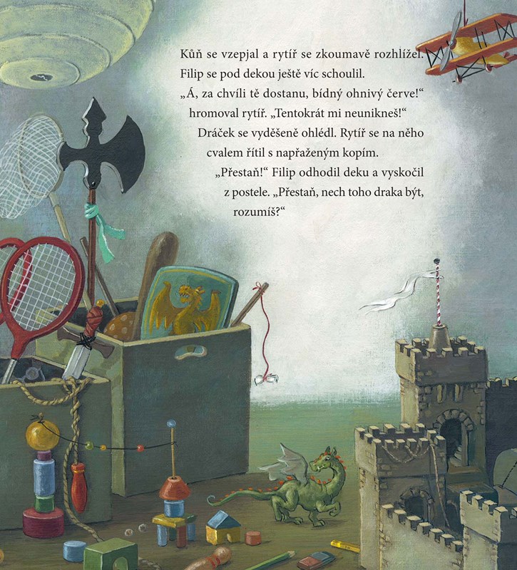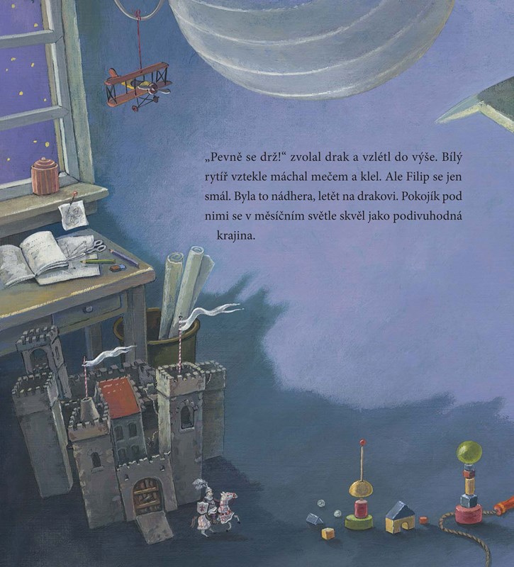 Přesně to se stane Filipovi jedné kouzelné úplňkové noci. Z jeho knížky vyskočí dráček, kterého pronásleduje neúprosný rytíř. Na údiv nad divotvornou mocí úplňku nemá Filip čas, sotva vyrazí ubohému dráčkovi na pomoc, začne se sám kvapem zmenšovat. Jak má teď bojovat proti zlostnému rytíři, když je maličký jako paleček? Filip musí rychle něco vymyslet…