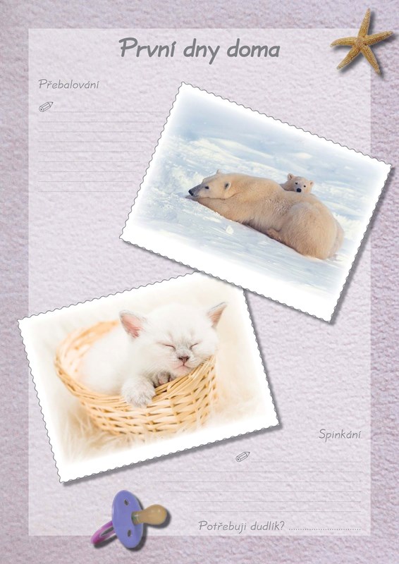 Milý a laskavý záznamník ze života vašeho dítěte. Do něj si budete zapisovat, jak jste se na miminko těšili, jeho příchod na svět, první dny doma, návštěvy, dárky, otisk ručičky a nožičky, první zoubky, slůvka, krůčky. Do této knížky si můžete nalepovat fotografie, ultrazvukové záznamy, dokonce i pozitivní těhotenský test. Do kapsiček si vložíte pramínek vlásků a nejkrásnější přání, které jste dostali od blízkých k narození děťátka. Na stužku vlepenou do hřbetu si můžete přivázat 'flešku' s rodinnými videozáznamy a sbírkou fotografií, takže budete mít vždy pohromadě a na jednom místě veškeré záznamy a obrázky.