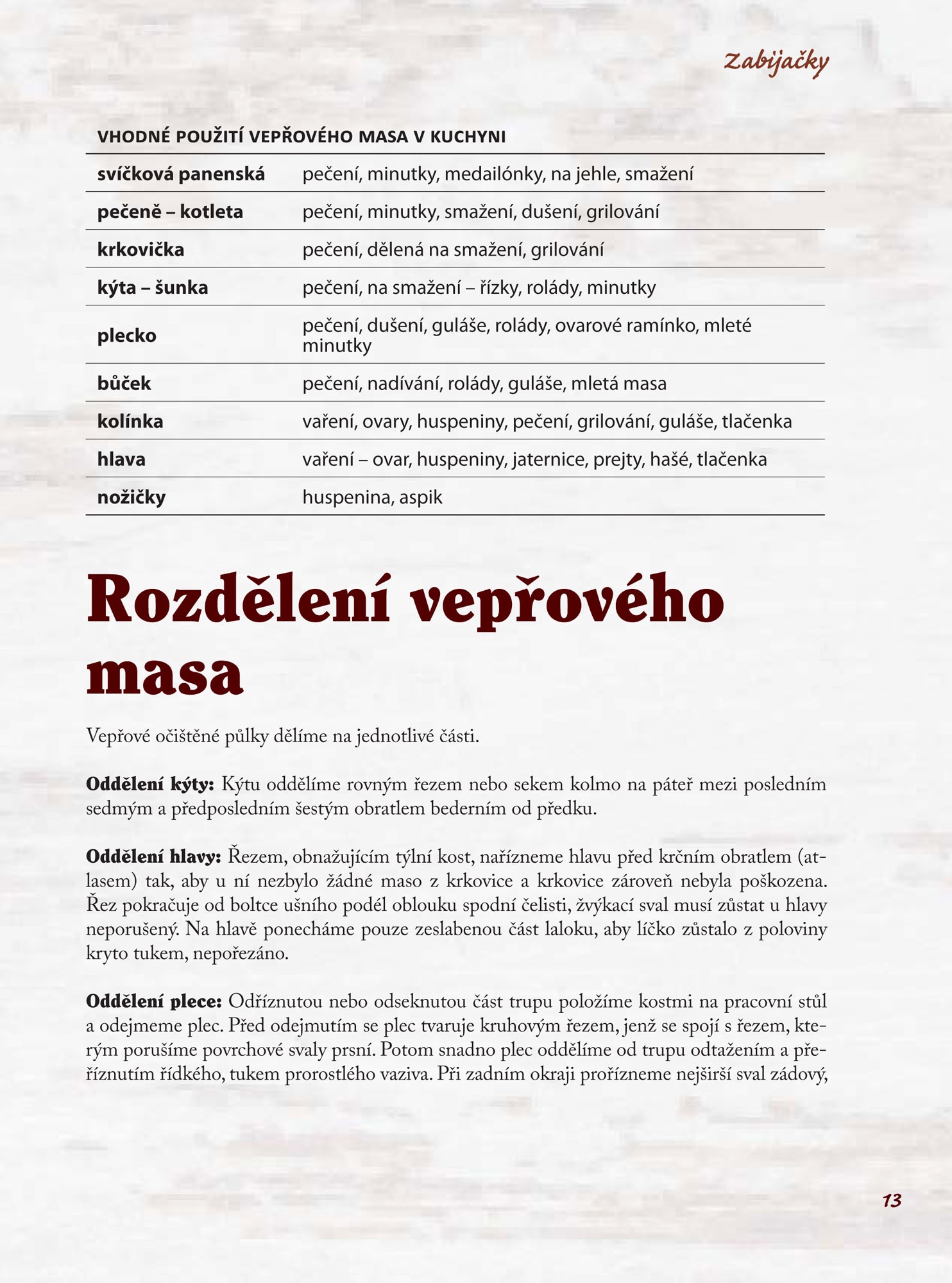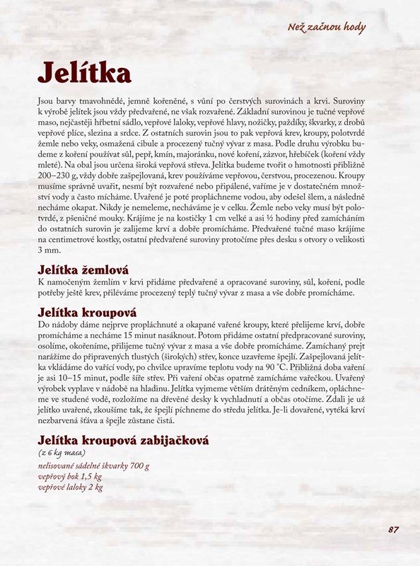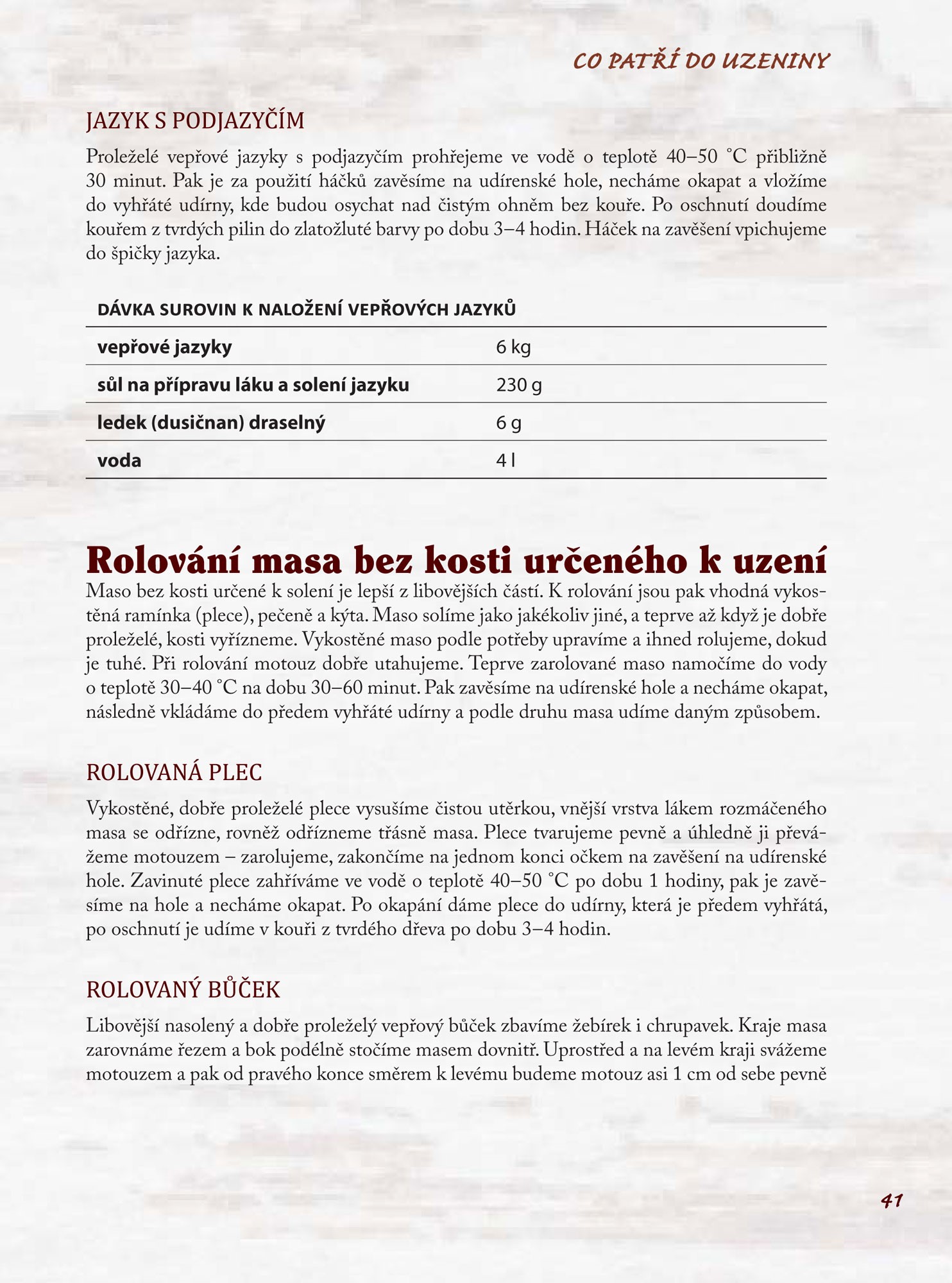 Navíc zde naleznete kapitolu, jak si postavit domácí udírnu a návod na uzení domácích výrobků, a také kapitolu s velmi starými zabijačkovými recepty.