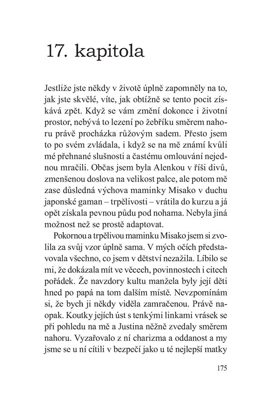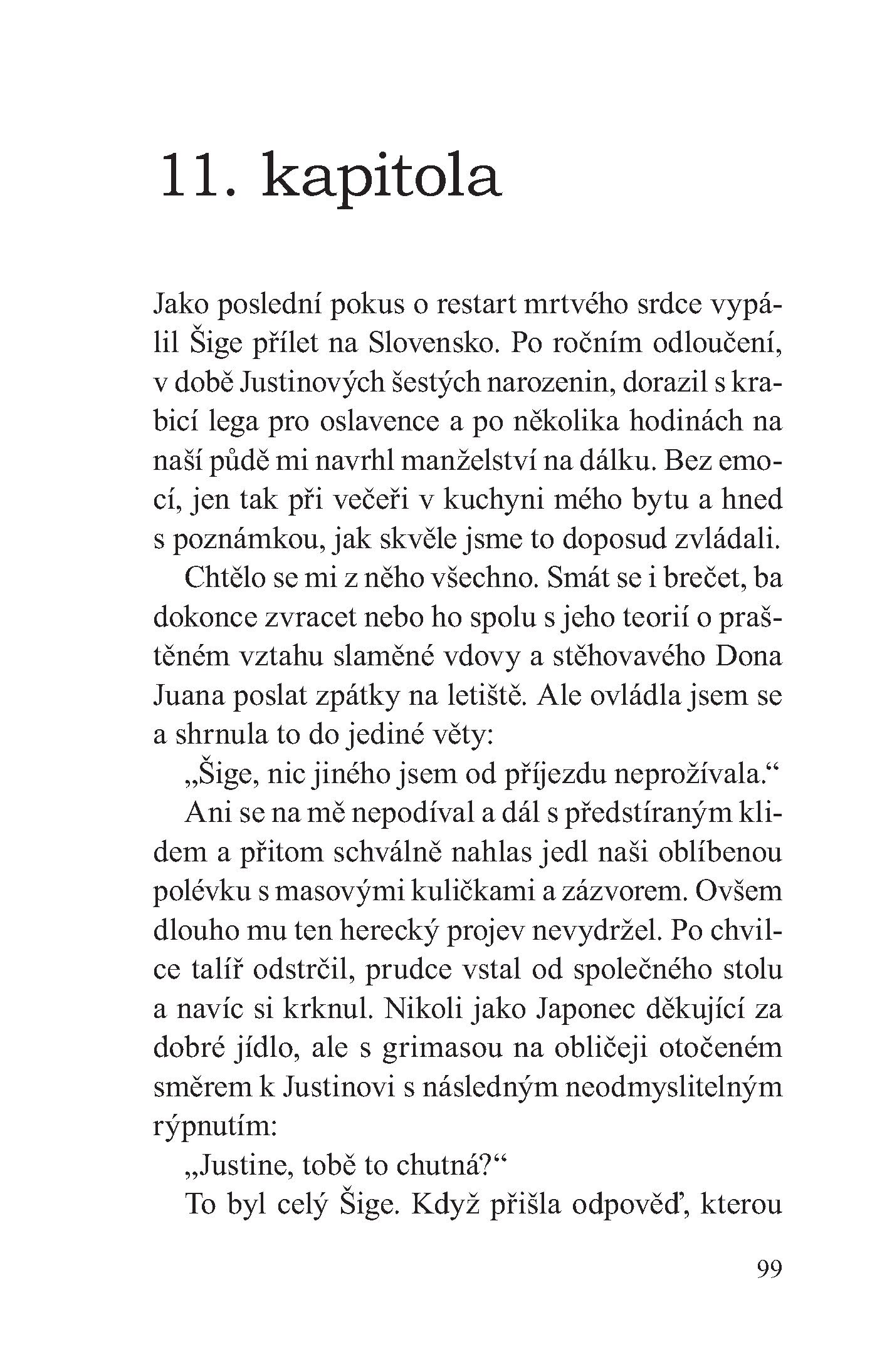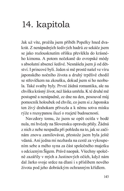 Můj předešlý život odplavila vlna tsunami spolu s průvodcem. Dnes, dva roky po rozvodu, už Šigeho jinak nenazvu. Dal mi pocit výjimečnosti, úžasného syna a možnost poznat a zamilovat si Japonsko. A potom se z mého a Justinova života vypařil jako bouřkový mrak, abych přes mnohá úskalí našla konecně samu sebe a to svoje vysněné štěstí…