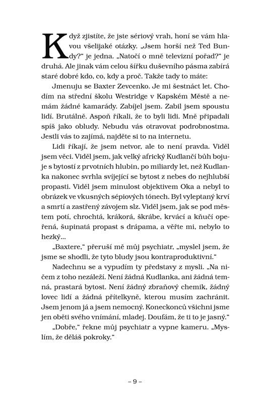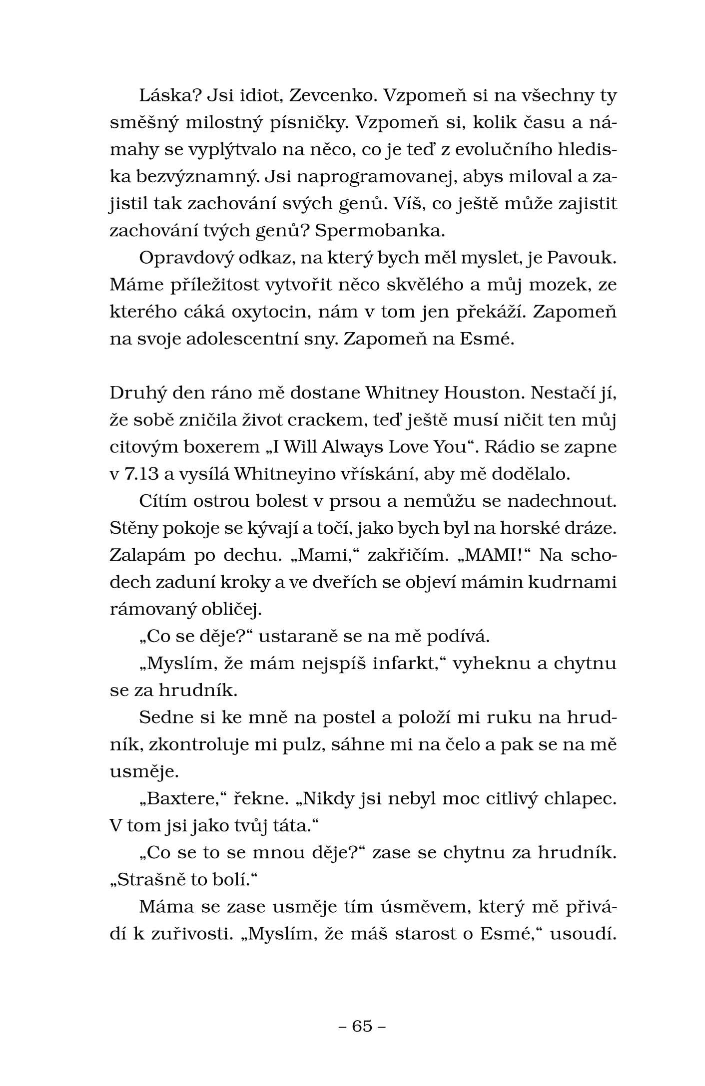 Jó, Harry Potter byl od pohledu hodnej kluk a Baxter Zevcenko má stejně sladkej kukuč, ovšem zbytek už tak trochu nesedí… Chodí na střední v Kapském městě, kde si slušně vydělává prodáváním bizarního porna, a tím tahá za nitky v hierarchii školních gangů, a taky chodí s Esmé, sexy šestnáctiletou kleptomankou…