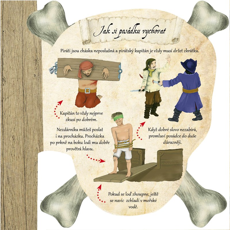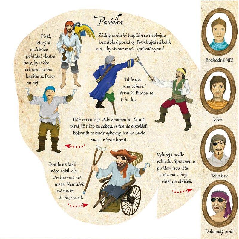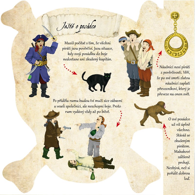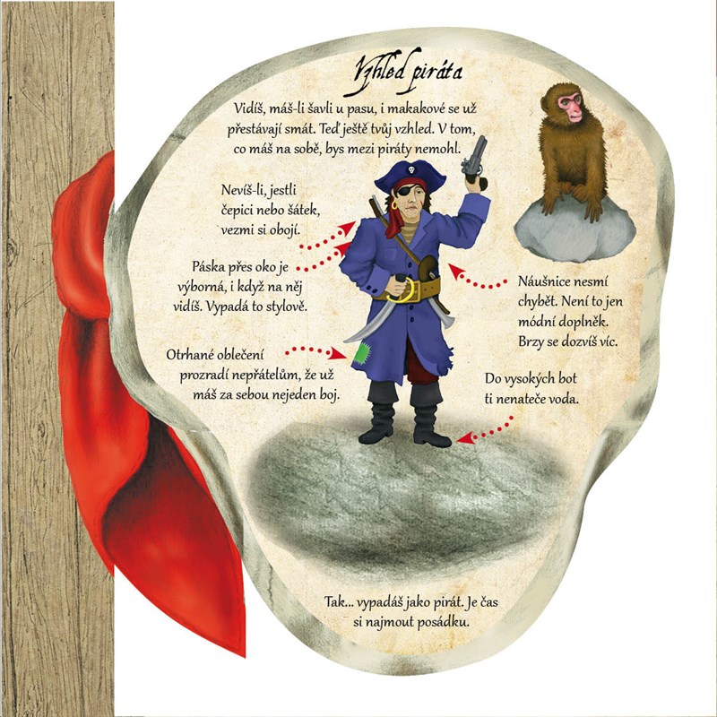 Vydej se s námi za pokladem starého prohnaného piráta. Po cestě z tebe udělám pravého pirátského kapitána. Vysvětlím ti, co musíš vědět o své posádce, jak se musíš obléct a jaké si máš opatřit zbraně. Pak společně najdeme poklad a na konci knihy tě čeká veliké překvapení. Tak neváhej a vzhůru na palubu.