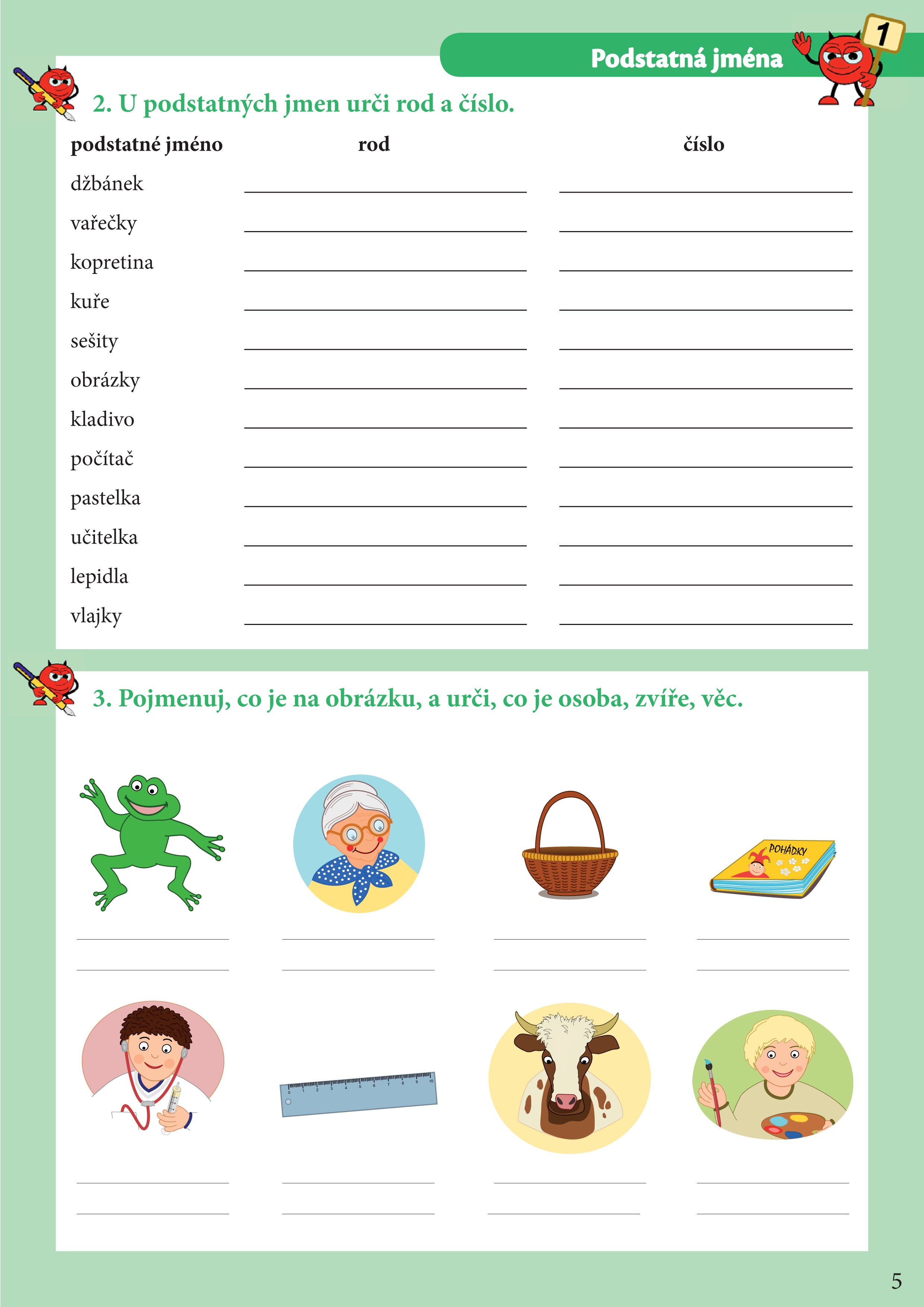 Cvičebnice je určena pro žáky 1. stupně ZŠ, kteří teprve začínají určování slovních druhů probírat. Vhodná bude také pro upevnění nebo procvičení znalostí. K tomu účelu slouží cvičení i karty v příloze.