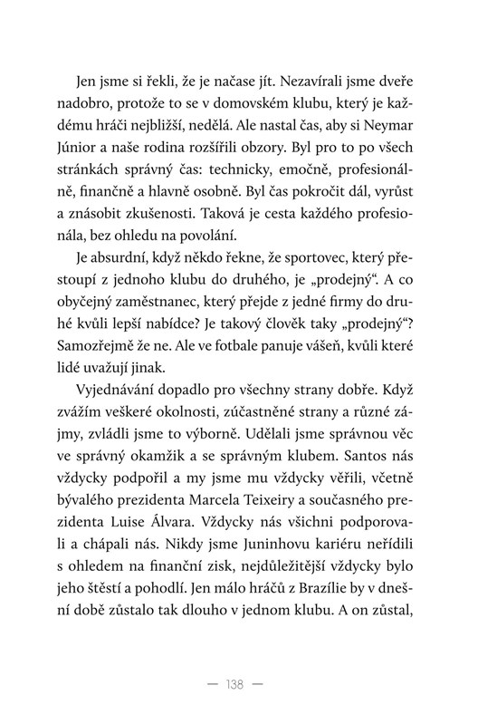 Ten vypravuje příběh Neymara Jr. ze svého pohledu – popisuje, jak ho poprvé přivedl na hřiště, radil mu, aby se neustále pohyboval a nezastavoval se, pomáhal mu s přestupy a obezřetně nakládal s vydělanými penězi. Svému synovi chtěl zkrátka dopřát maximální svobodu, aby mohl zářit. A to se mu podařilo.