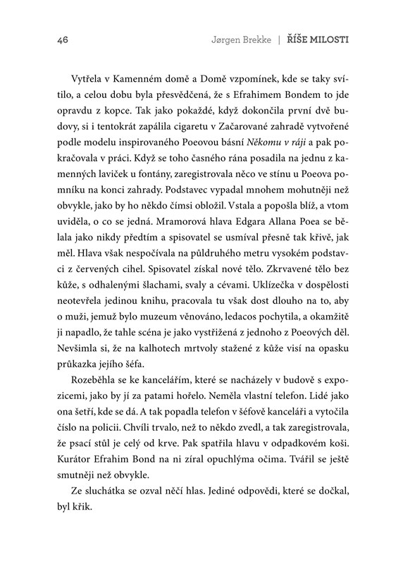 Tak začíná první román, jenž čtenářům představí novou ústřední policejní dvojici - Američanku Felicii Stoneovou a norského policejního inspektora Odda Singsakera, který se zotavuje po prodělané rakovině.