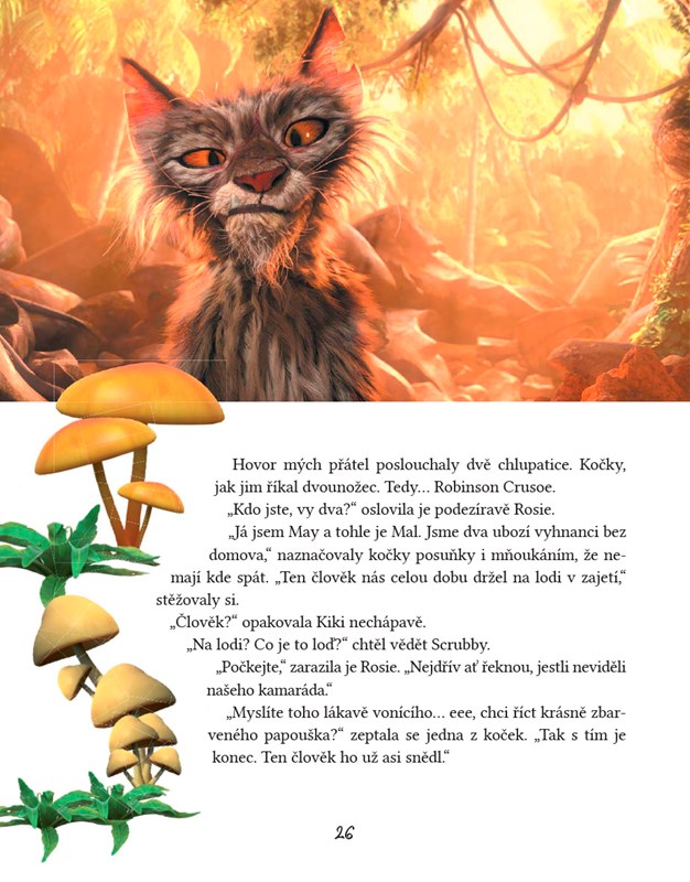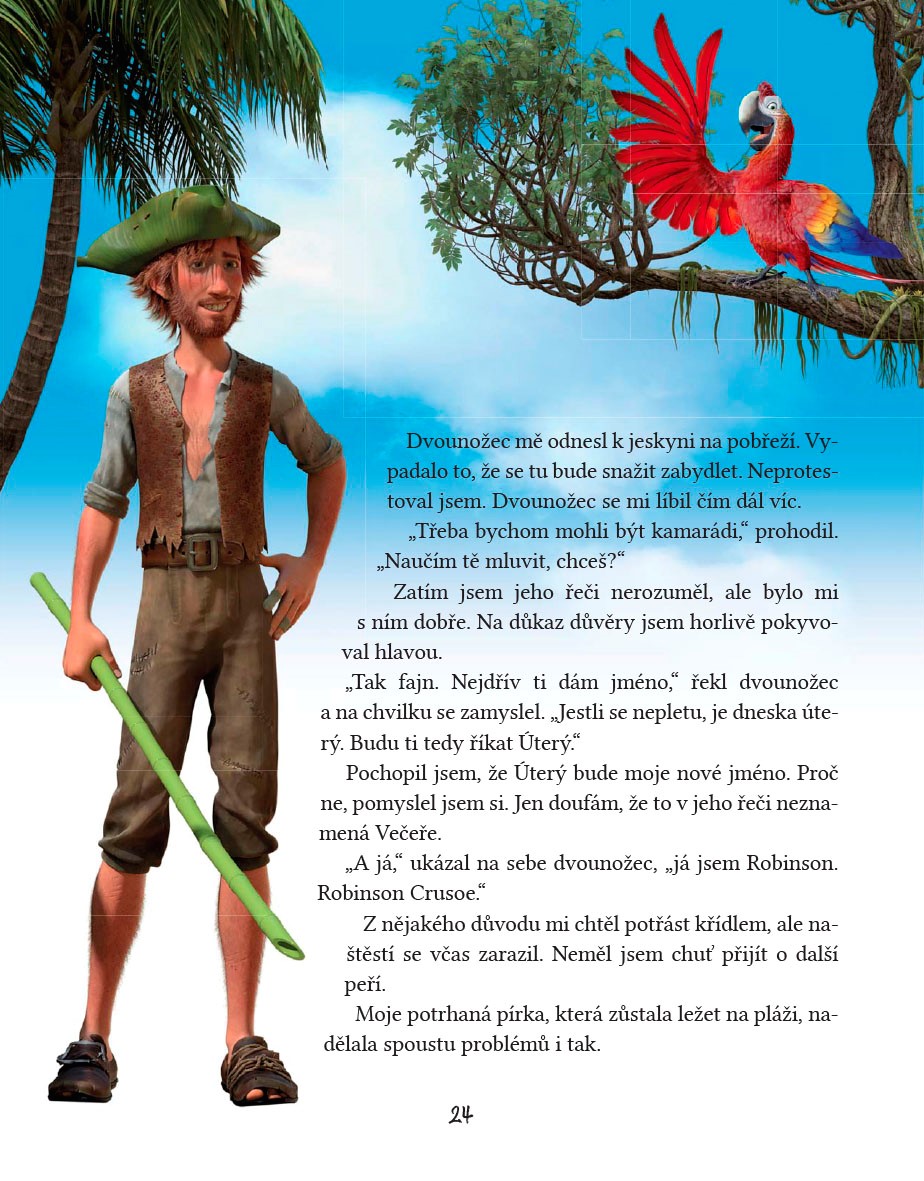 Robinson Crusoe a jeho přítel papoušek Úterý v dobrodružném příběhu podle stejnojmenného filmu pro děti.