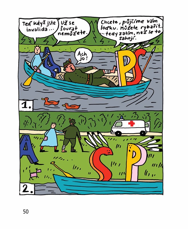 Další kniha plná písmenek. Jak si pan Antonín a písmenko A poradí, když jim odplaval jejich domeček?