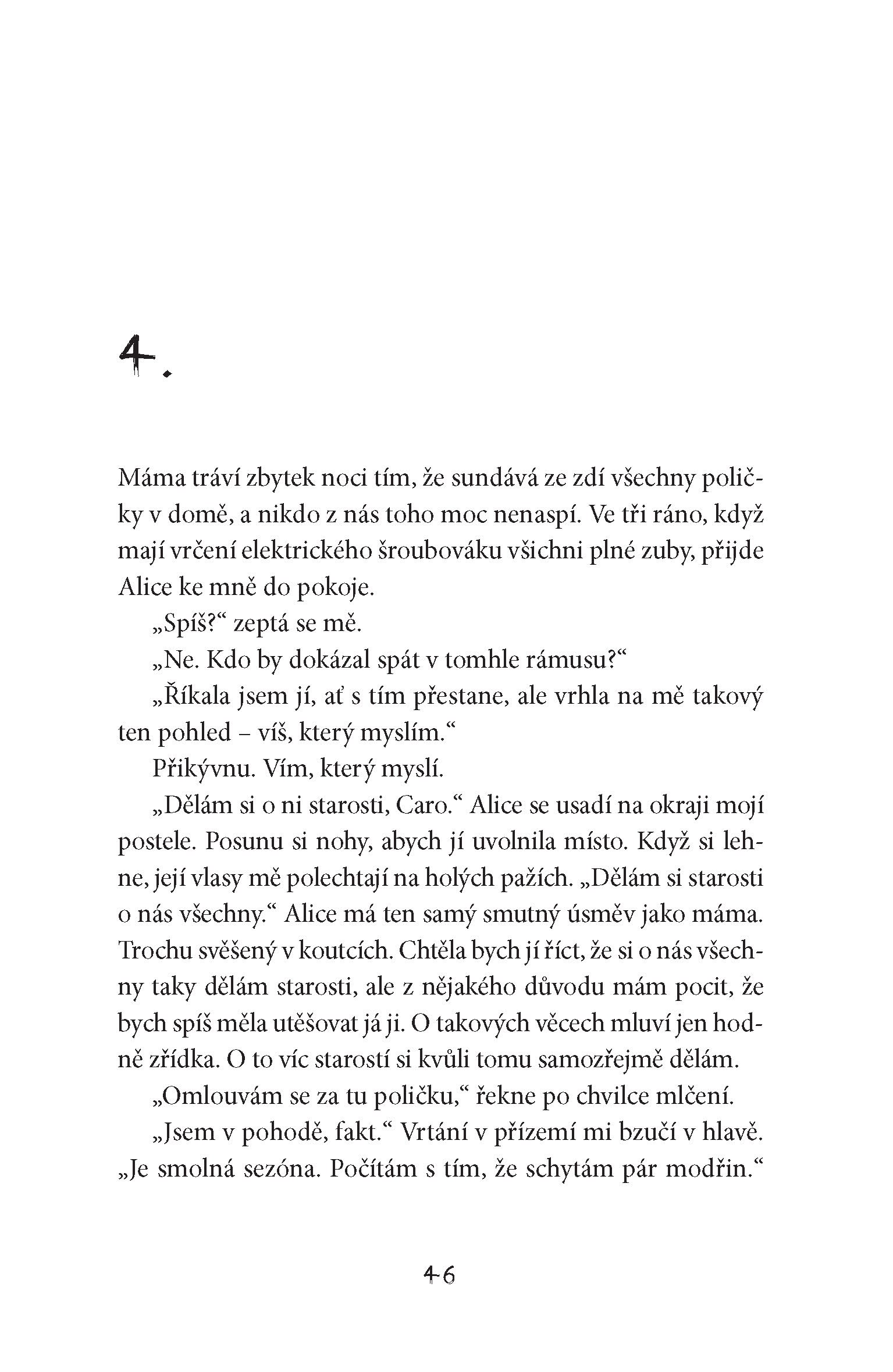 Smolná sezóna je součástí Cařina života tak dlouho, jak si jen pamatuje. Vždycky koncem října. Už spousta jejích příbuzných v tuhle dobu přišla o život. Cařina rodina je nevysvětlitelně náchylná k nejrůznějším nehodám. Proto schovávají nože, ostré hrany stolů omotávají vatou a vypínají elektrické spotřebiče – ale nehody je pronásledují na každém kroku a ze smolné sezóny se pomalu stává obsese a jejich největší strach.