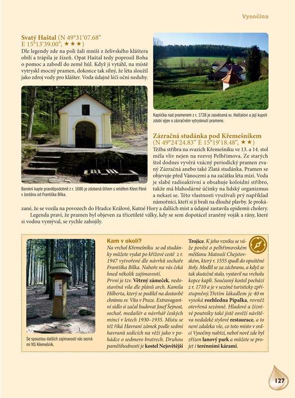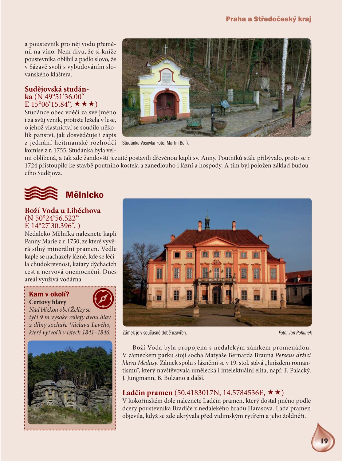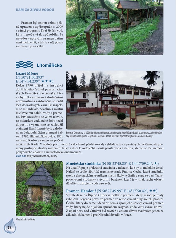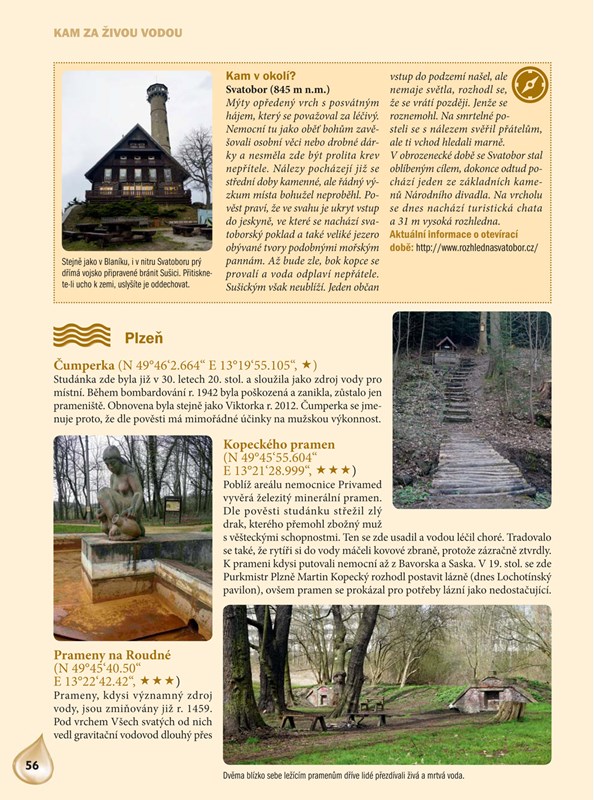 Objevte s tímto zbrusu novým průvodcem zázračné studánky, léčivé a minerální prameny, zapomenuté i věhlasné lázně či duchovní místa s vodou spojená. V knize naleznete stovky nejzajímavějších a výjimečných míst, která jsou členěna podle jednotlivých okresů. U každé lokality nechybí GPS souřadnice a informace o schůdnosti terénu, abyste věděli, zda můžete vyrazit pěšky, na kole či případně s vozíčkářem. Samozřejmostí jsou tipy na zajímavá a turisticky atraktivní místa v okolí vodních pramenů.