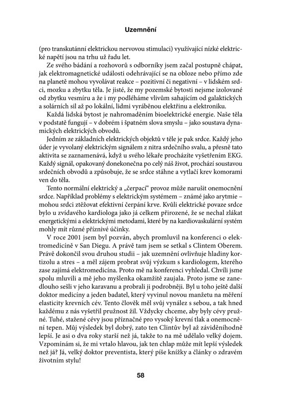 ŽPoznejte objev, jehož závěry nám doporučují žít více v kontaktu se Zemí, využívat jejího přírodního povrchového náboje a pomocí jednoduchých pomůcek a způsobů, třeba jen chůzí naboso, se Země dotýkat – uzemňovat se. Tento snadný proces zabraňuje tvorbě chronických zánětů v těle a následně rozvoji civilizačních onemocnění, poruch spánku, alergií, hormonálních výkyvů, kloubních potíží, orgánového postižení a dalších chronických problémů.
