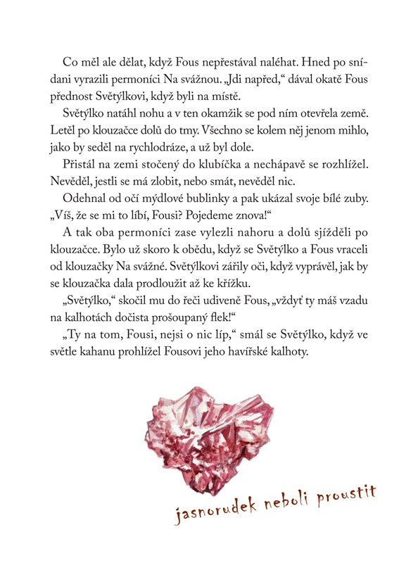 Kdysi, to už je dávno, jsem na dole Řimbaba zachránil permoníka Fouse. Pokud si myslíte, že se permoníkům v dole nic stát nemůže, není to pravda. Fous se chodil každé ráno mýt k podzemnímu jezírku. A jak jinak, než s fajfkou v hubě. A taky byl domluvený s netopýrem Křížalou, že mu vždycky profrčí okolo vousů a trochu mu je přičísne, tak to měl Fous dobře zařízené.