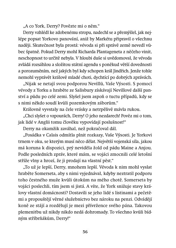 Píše se rok 1454 a král Jindřich VI. je už přes rok upoután na lůžko. Královy zájmy jen s obtížemi hájí jeho oddaná žena Markéta z Anjou za pomoci vrchního vyzvědače Derryho Brewera. Zatímco panovník chřadne a chvílemi upadá do bezvědomí, svou pozici v zemi upevňuje Richard, vévoda z Yorku. A spolu se Salisburym a Warwickem vytvářejí vlivnou trojici, jež se snaží zlomit panovníkovy přívržence. Jenže vtom se Jindřich VI. jako zázrakem uzdravuje. Boj o moc může opět vypuknout naplno a obě strany čeká první bitva u St. Albans, tradičně označovaná jako počátek Války růží… Conn Iggulden (*1971) o sobě tvrdí, že je odmalička fascinovaný příběhy. Než se stal spisovatelem na plný úvazek, přednášel sedm let historii na Londýnské univerzitě. Napsal již několik historických románů, z nichž některé se představily i českým čtenářům, např. trilogie o Čingischánovi či tetralogie věnovaná životu Julia Caesara. Ve své nejnovější historické sérii čerpá z anglických dějin: vrací se k tzv. Válce růží. Ve druhém díle, jehož první část se odehrává v roce 1454, druhá pak o pět let později, autor popisuje úvodní léta tohoto krvavého konfliktu – od první bitvy u St. Albans přes bitvu u Northamptonu a další události, které zásadně ovlivnily anglické dějiny. Iggulden se opírá o důkladnou znalost historie, zároveň umí vystavět dramatický příběh, v němž dávné děje a postavy doslova ožívají před očima. Svým působivým stylem bez příkras čtenáře přenese přímo doprostřed válečné vřavy na bojištích nebo k tajným jednáním ve zdech středověkých hradů.