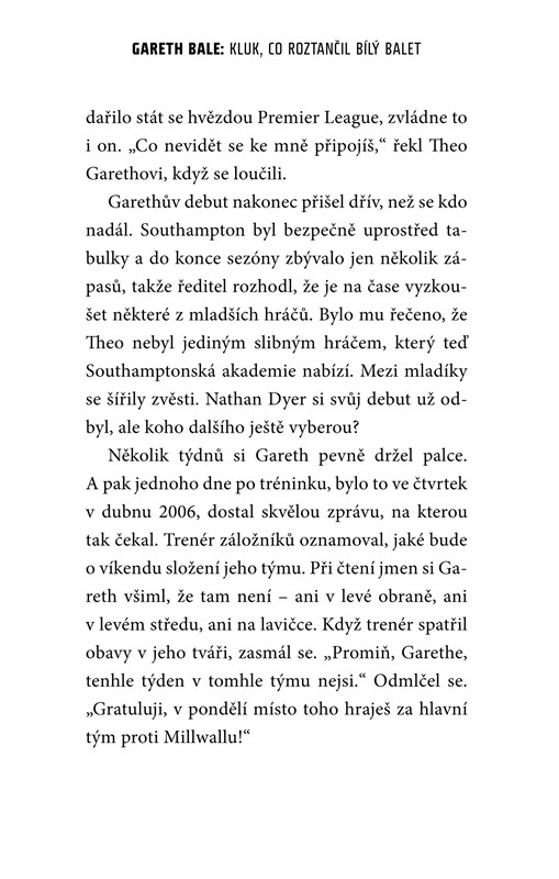 Velšská superhvězda. Vyniká svou rychlostí a umí dávat góly z trestných kopů. A v současnosti nosí bílý dres. Přečtěte si, jak se k němu Gareth Bale propracoval, co všechno mu stálo v cestě a co musel překonat. Uvidíte, že neměl ušlapanou cestičku, že nestačilo jenom kopat do míče jako na dvorcích ve velšském Cardiffu. Sledujte ho od jeho prvního gólu až po ten první za Galácticos.