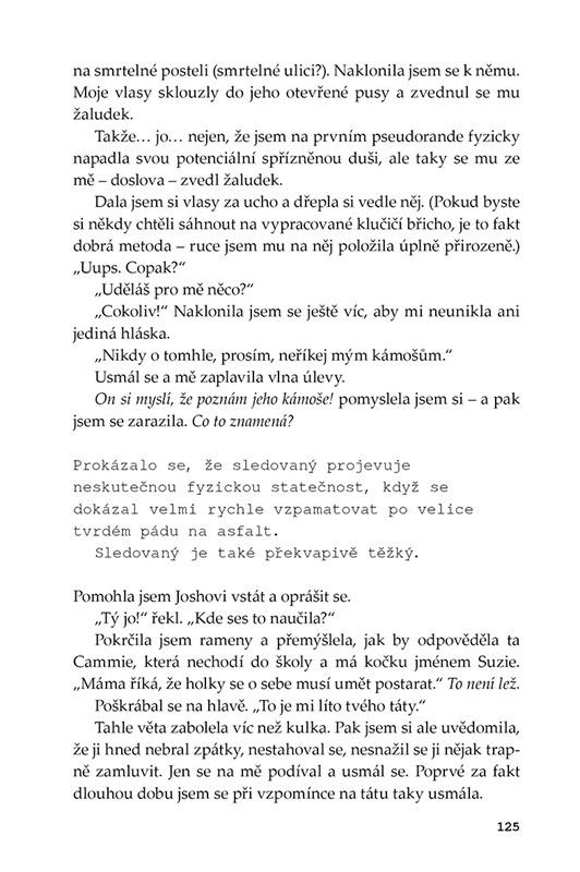 Jenže pak Cammie narazí na problém, se kterým si neví rady: co se stane, když se do Joshe nečekaně zamiluje? Dá se skloubit život obyčejného kluka se supertajným životem budoucí špionky, o kterém se Josh nesmí nic dozvědět? A hlavně: bude ji mít rád, i když zjistí, kdo Cammie Morganová opravdu je?