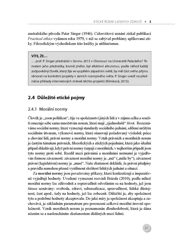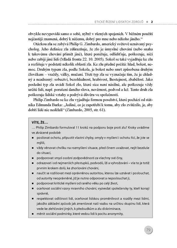 Monografie obsahuje celkem 8 kapitol, poslední prezentuje výzkum v oblasti angažovanosti týkající se generace Y a v podstatě rozšiřuje a doplňuje kapitoly 1. a 3. První kapitola pojednává o rozvoji angažovanosti pracovníků a představuje jak teoretický koncept angažovanosti pracovníků, tak také konkrétní příklady hodnocení angažovanosti a objasňuje úlohu personálního útvaru při rozvoji pracovníků. Ve 2. kapitole o etickém řízení lidských zdrojů jsou sumarizována východiska etického řízení v organizaci a je navržen program pro uplatnění etických principů v organizaci. Ve 3. kapitole je charakterizována generace Y a předložena relevantní doporučení, která by se měla, s ohledem na specifika této generace, promítnout do výkonu příslušných personálních činností. 4. kapitola se zabývá tématem diverzity managementu, které může být v současnosti diskutované, ale v dnešním globalizovaném světě je plně opodstatněné se s touto problematikou podrobněji zabývat a seznámit se s nástroji, které mohou pomoci při implementaci diversity managementu v organizaci. V 5. kapitole jsou charakterizovány kompetence pracovníků, a to ve smyslu jejich pracovní způsobilosti. Stále častěji se v organizaci setkáváme s tím, že kompetenční modely jsou základem pro řízení lidských zdrojů v organizaci. 6. kapitola obrací pozornost na využití sociálních sítí v řízení lidských zdrojů a 7. kapitola shrnuje poznatky a zkušenosti z personálního controllingu a reportingu. Každá kapitola zahrnuje rozsáhlý soupis literatury, který může sloužit zvídavým čtenářům k dalšímu studiu.