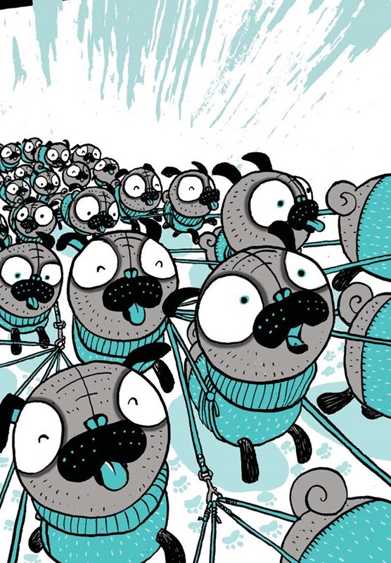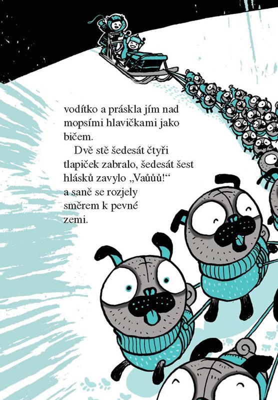 Sněžné sáně tažené 66 mopslíky, to už je pořádná síla! Podaří se jim prokličkovat mezi sněžnými obry a dojet až na samotný konec světa?