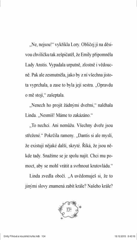 Emily je moc ráda, že patří do pohádkové rodiny, ale musí udržet existenci světa čar a kouzel v naprosté tajnosti. A to i před svou nejlepší kamarádkou. Ale pak si najednou její starší sestra Lory přivede domů cizího kluka… Který se až moc zajímá o tajemné dveře do pohádkového světa. Kdo je onen tajemný cizinec, který všem v rodině připadá podezřelý a povědomý zároveň? Že by se snažil proklouznout do pohádkového světa?