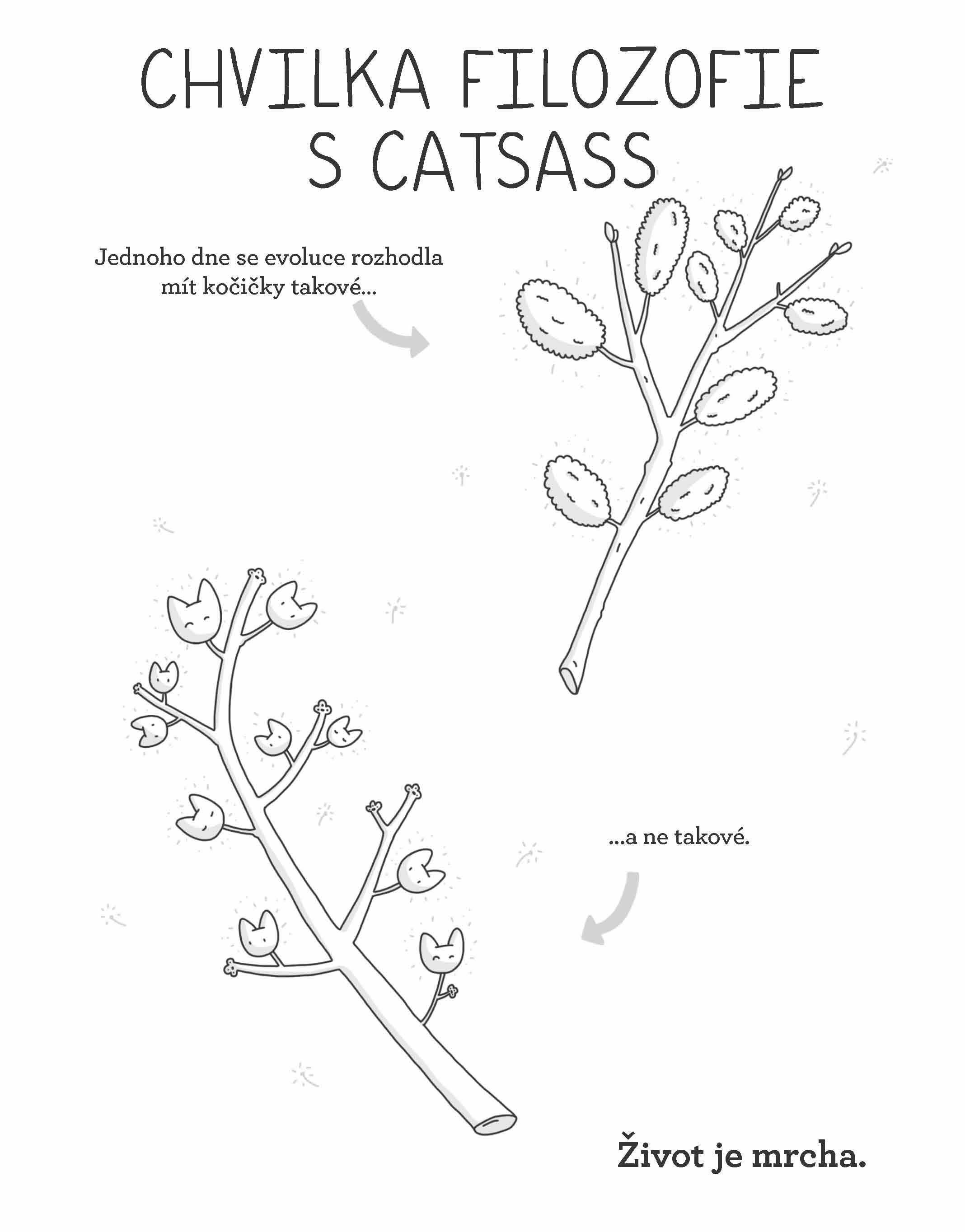 Interaktivní, vtipné, provokativní komiksové stripy od mladé francouzské karikaturistky poprvé knižně. Nejedná se o obyčejný komiks, Catsass vás zapojí do svých kvízů, křížovek, zenových omalovánek a vystřihovánek. Dozvíte se, co obsahuje Sada pro přežití s kočkou, jak vypadá suši-kočka, či jak zní 50 odstínů mňauku.