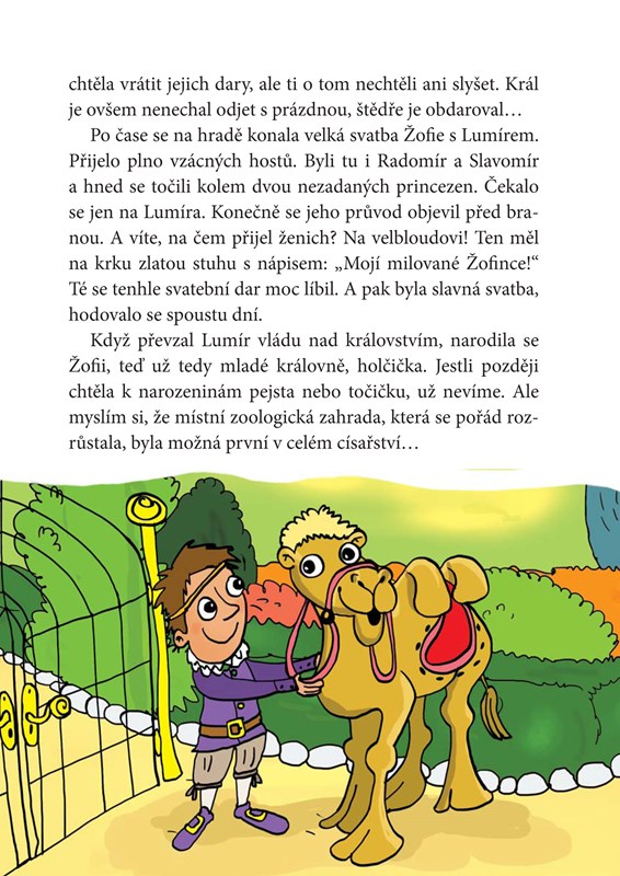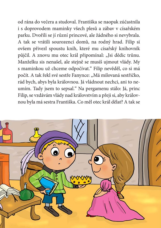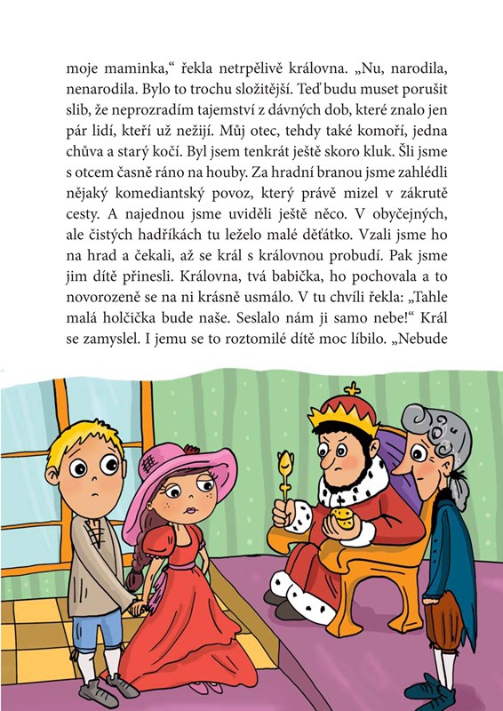 Snad každý z nás si někdy představoval, jaké by to bylo, žít na královském dvoře. Procházet zdobené komnaty paláce, užívat si napínavé rytířské turnaje a velkolepé hostiny ve vznešené společnosti. Ale víte, že králové a královny, princezny a princové, dvorní dámy, sluhové, zahradníci i všichni ostatní z královských dvorů měli radosti i starosti podobné jako my dnes? Pohádky, které sestřenicím Elišce a Sáře vypráví pozorný dědeček, nabízejí všem dětem i dospělým nejen okouzlující atmosféru královských dvorů, ale také pomoc s jejich trápeními.