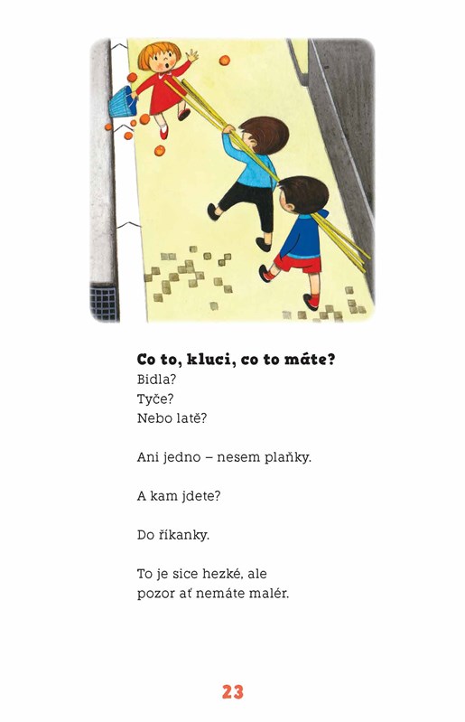 Já mám kolo, ty máš kolo, kol je dneska všude mnoho, má ho Dan i Nikola, málokdo je bez kola… Pavel Žiška píše vážně i nevážně o tom, jak na ulici nepřijít k úhoně, i o tom, co se na silnicích změnilo od dob našich dědečků. Hravé verše doprovázejí ilustrace Rudolfa Lukeše, původně určené pro tematické kvarteto.