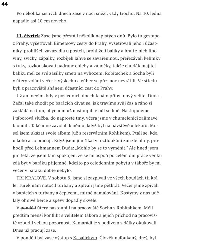 Právě oba deníky, které vycházejí knižně poprvé, jsou klíčem k Sekorově poválečnému levicovému postoji, k jeho snaze distancovat se od své prvorepublikové minulosti i k jeho rostoucímu odporu k jakémukoli násilí. Civilnost a všednost Sekorových záznamů je někdy téměř šokující, někdy úsměvná (Jeden kolega, když se kritizovaly větrné latríny, se zanícením se rozpovídal: „Páni, až bude po válce, tak si vezmu asi pět cigaret, půjdu doma na záchod, a budu tam sedět celou hodinu!“), a mezi řádky tak i po mnoha letech vysvítá Sekorův chlapský a nepateticky odvážný postoj.