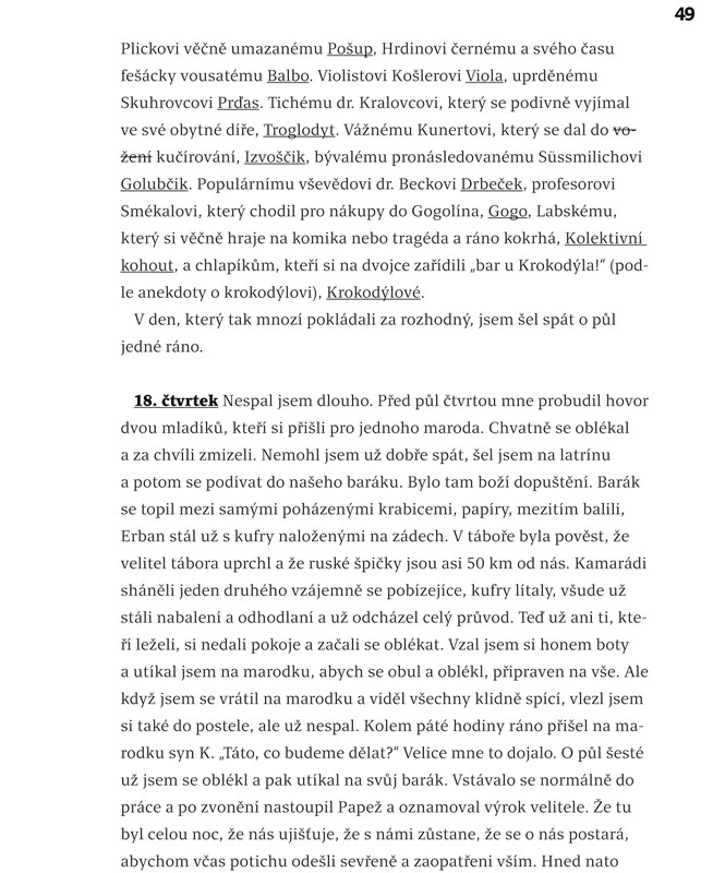 Ondřej Sekora, nezaměnitelný spisovatel a ilustrátor knih pro děti i dospělé, jeden ze zakladatelů českého komiksu, byl nucen na základě nacistických zákonů nastoupit na konci války do pracovního tábora v Německu. Později se k této neblahé epizodě svého života nerad vracel, ale za pobytu v pracovních lágrech v letech 1944 a 1945 si psal deník slovem i obrazem. Vzniklo tak jedinečné svědectví z méně známých pracovních táborů v Klein Steinu a Osterode, jedinečné právě v propojení Sekorových satirických kreseb s věcnými záznamy života v táboře, který si autor zpestřoval humornými poznámkami a glosami.