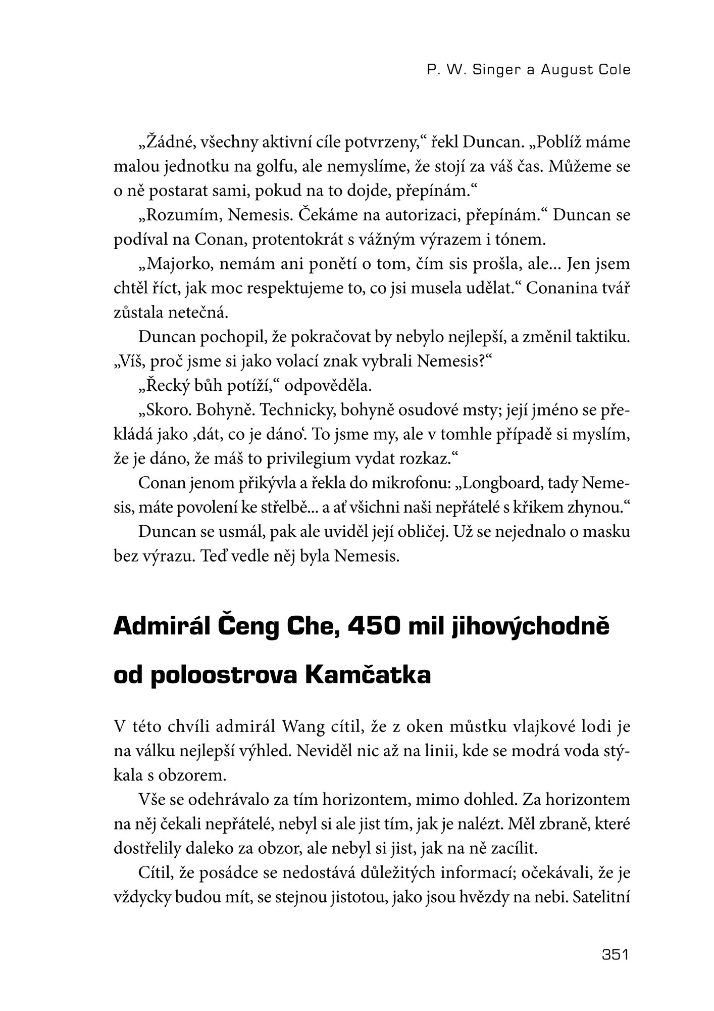 Autoři ostatně znají reálie více než dobře, August Cole je analytik specializující se na otázku národní bezpečnosti USA a bývalý reportér Wall Street Journal, P.W. Singer je odborník na způsoby vedení války budoucnosti.